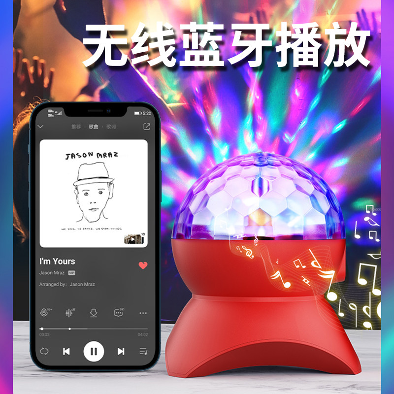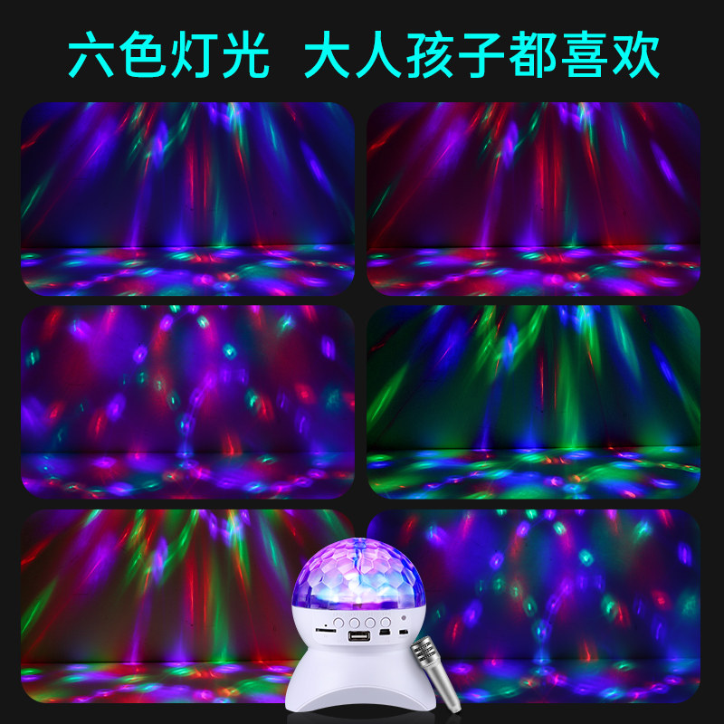 智能蓝牙音箱蹦迪灯彩灯话筒K歌音响低音炮舞台ktv七彩旋转闪光灯
