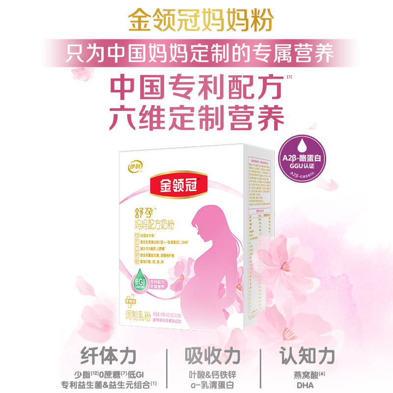 伊利金领冠基础0段舒孕 2罐富含叶酸DHA 孕产妇专用配方奶粉750g