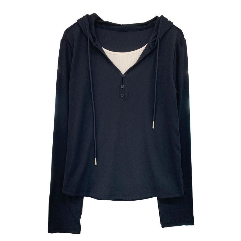新休闲百搭宽松打底衫 T恤女秋季 神级显瘦假两件连帽长袖 闭眼冲