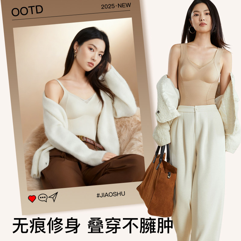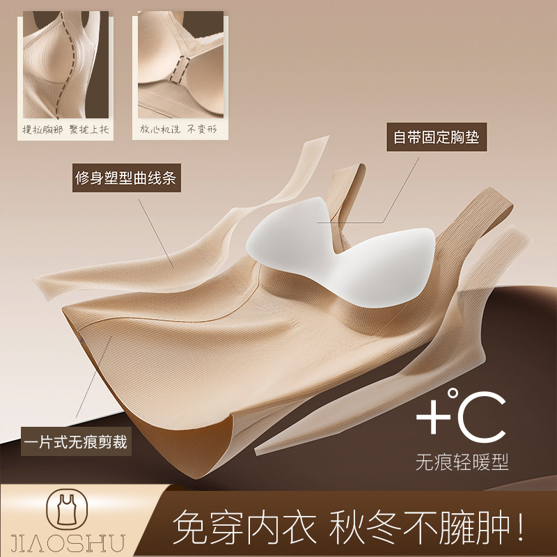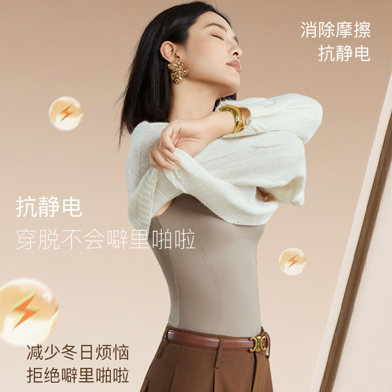 蕉树山茶花32A抗菌V领固定杯抗静电保暖背心529