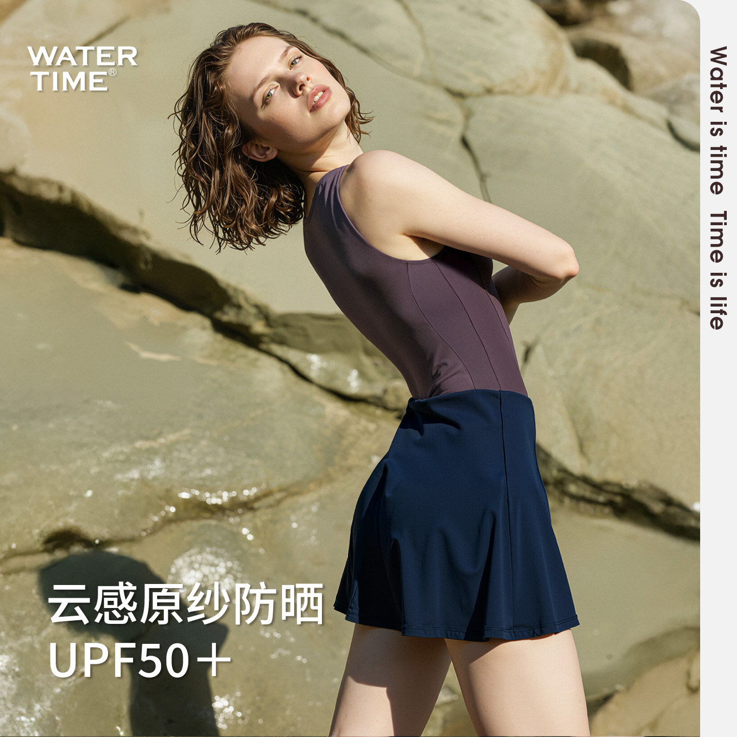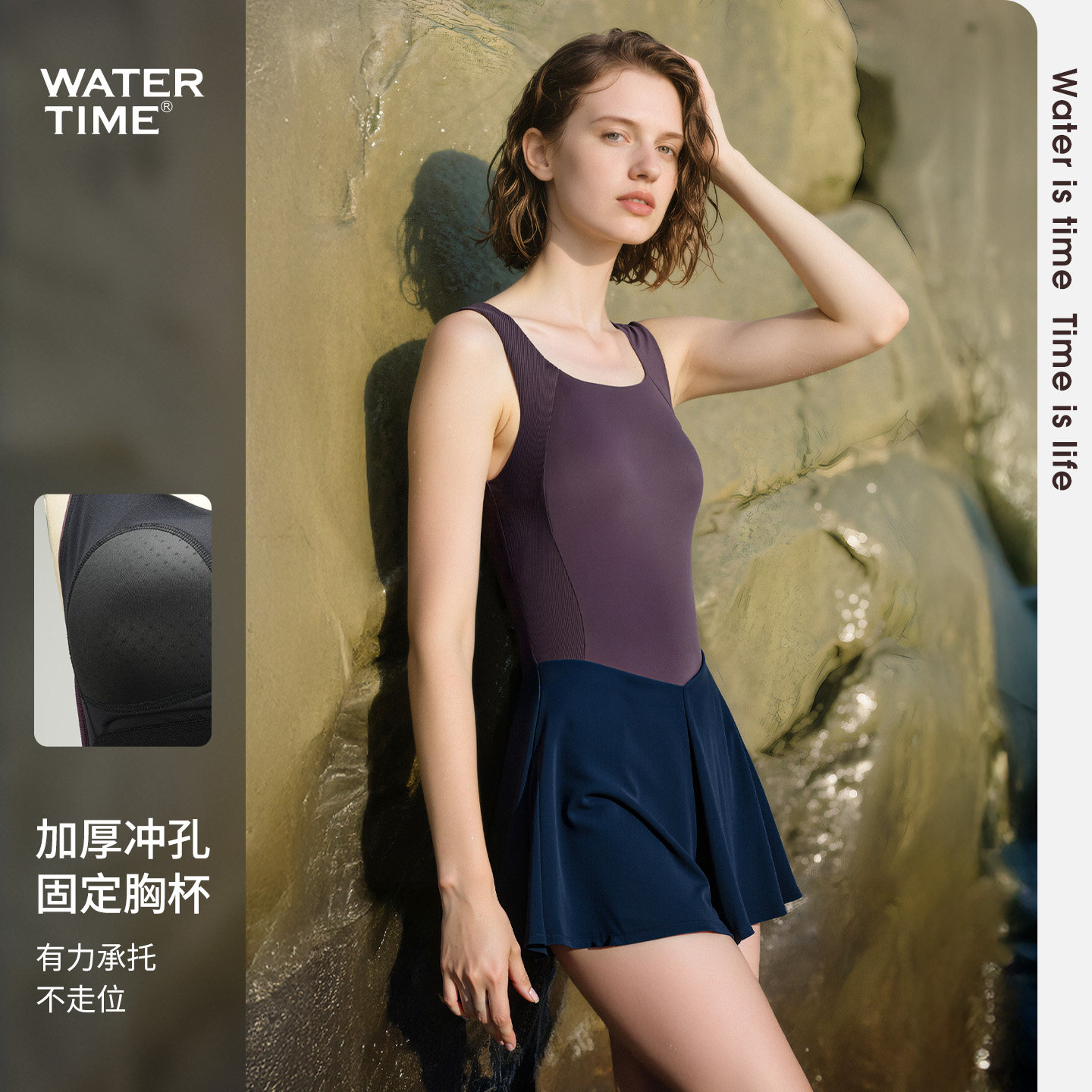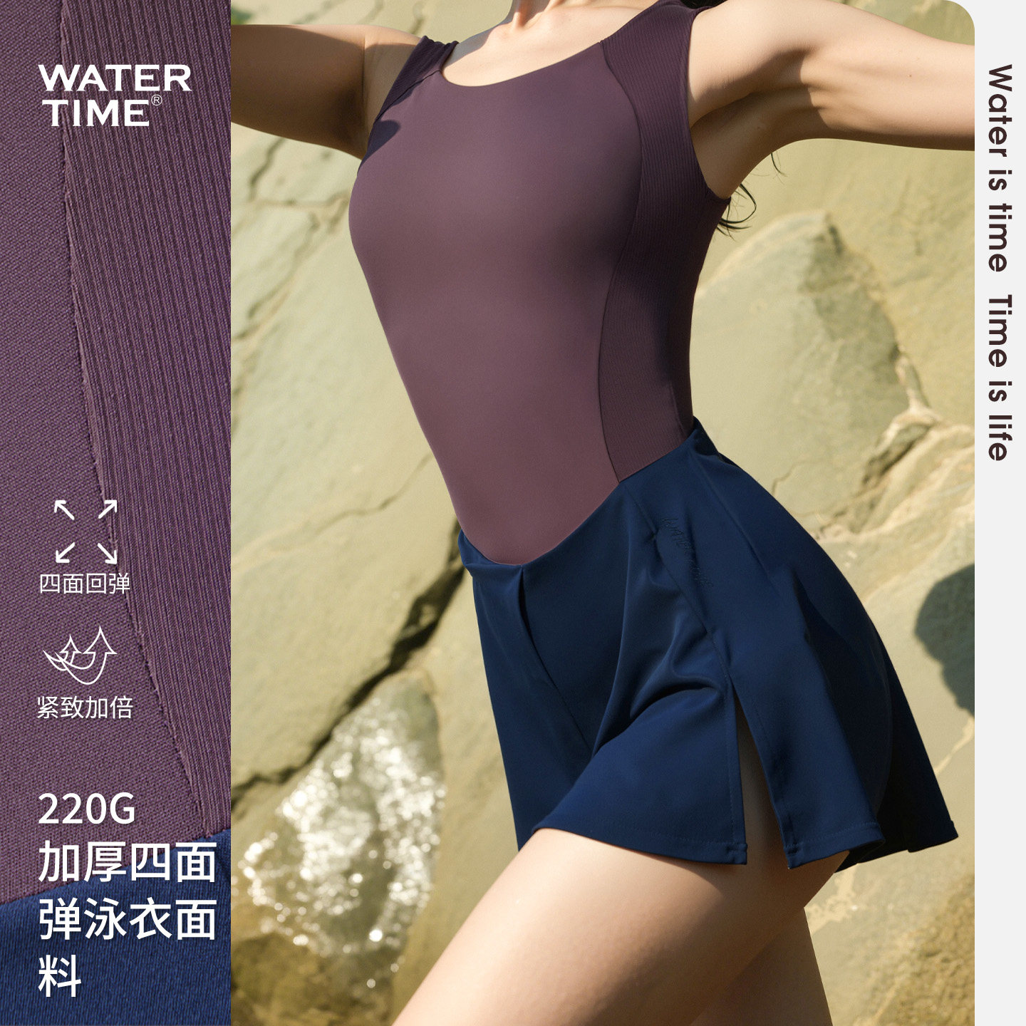 WaterTime泳衣女款 连体保守游泳馆专用微胖遮肉温泉平角竞速泳装