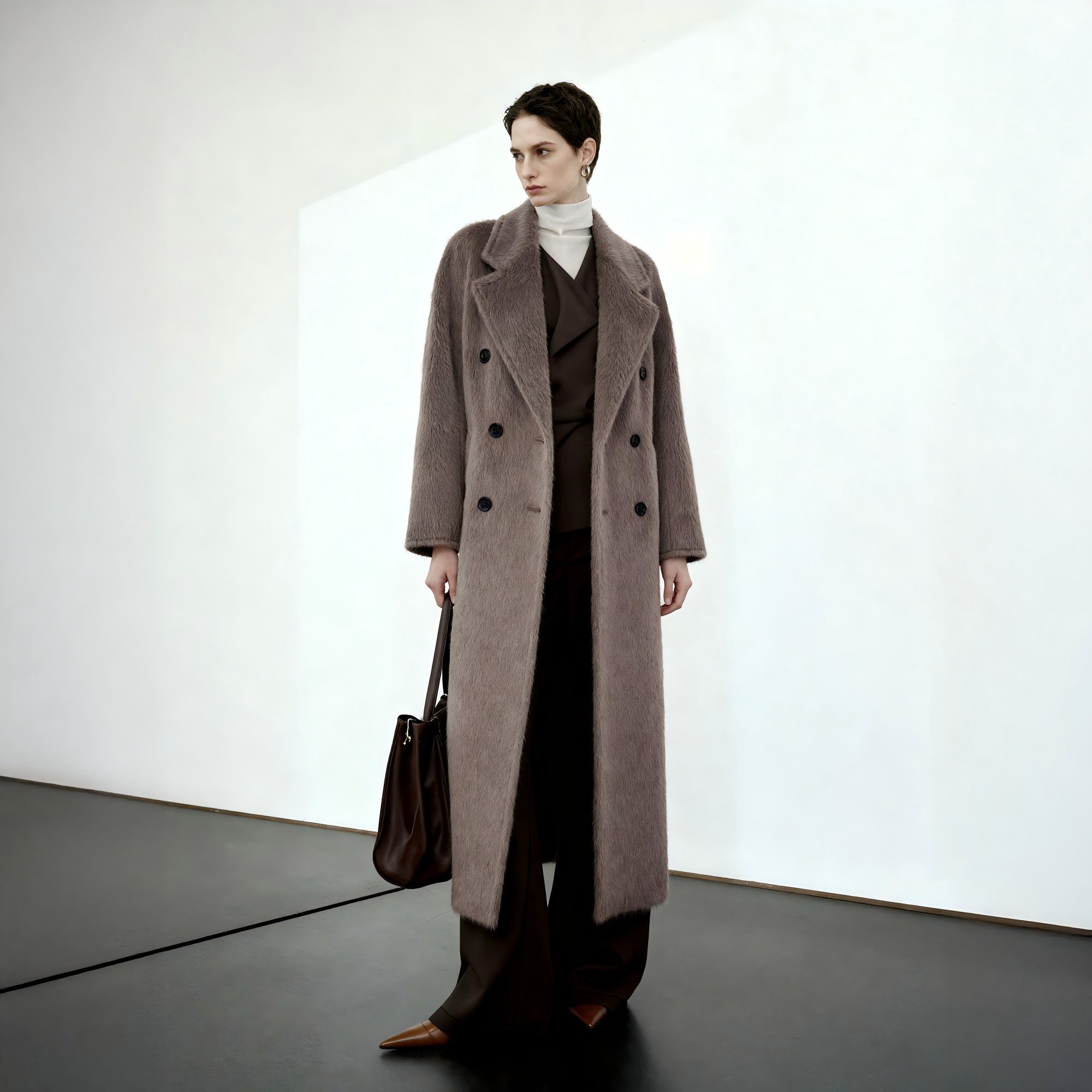 西装 过膝双面羊绒外套 领毛呢子风衣 中长款 纯羊毛双面呢大衣男士