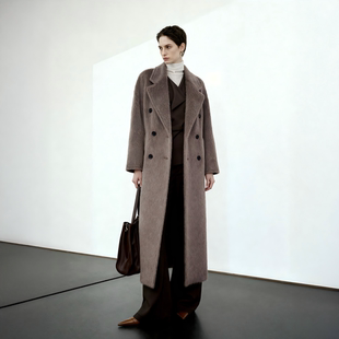 慵懒风双面羊毛大衣女中长款 灰色毛呢外套高级感