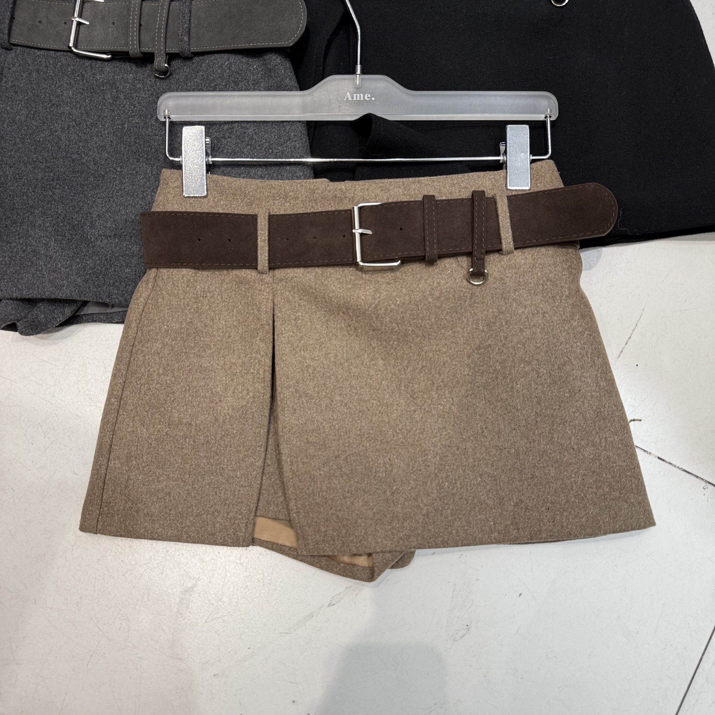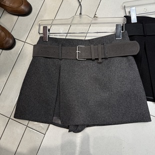 加厚高腰设计显瘦宽松半身裙裤 新款 2025年秋冬季 灰色百搭毛呢裙裤