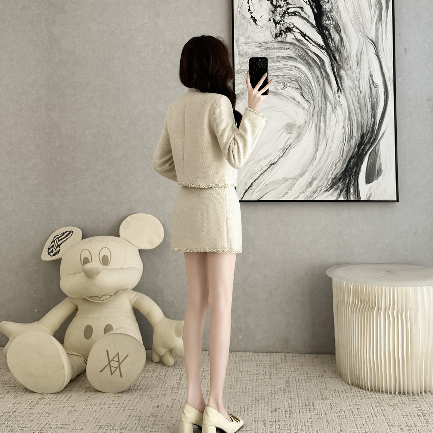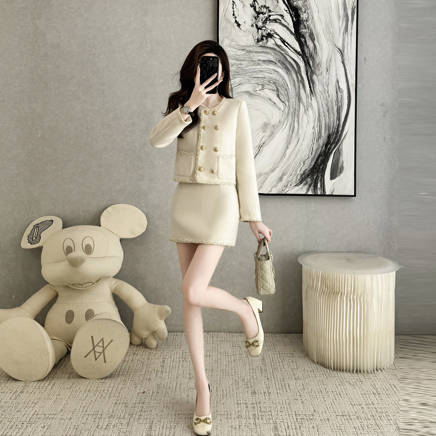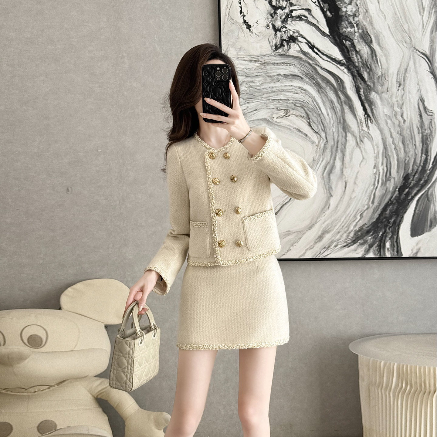 小香风粗花呢套装 高级感气质名媛百搭短外套半身裙两件套 女秋冬季