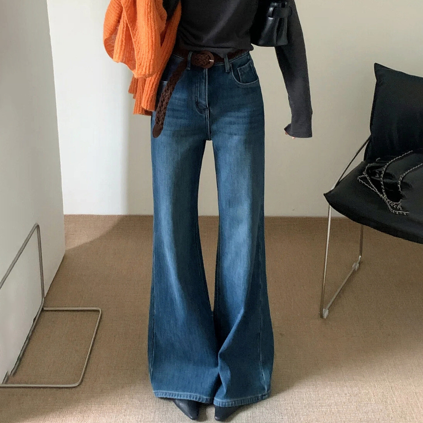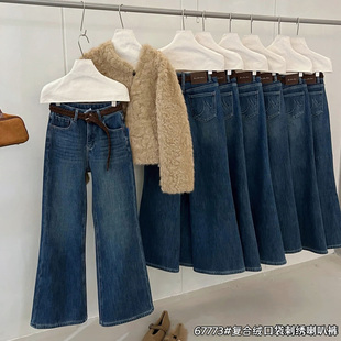 显瘦牛仔微筒喇叭裤 2025冬新款 Jeans阿凡牛67773复合厚绒保暖修身