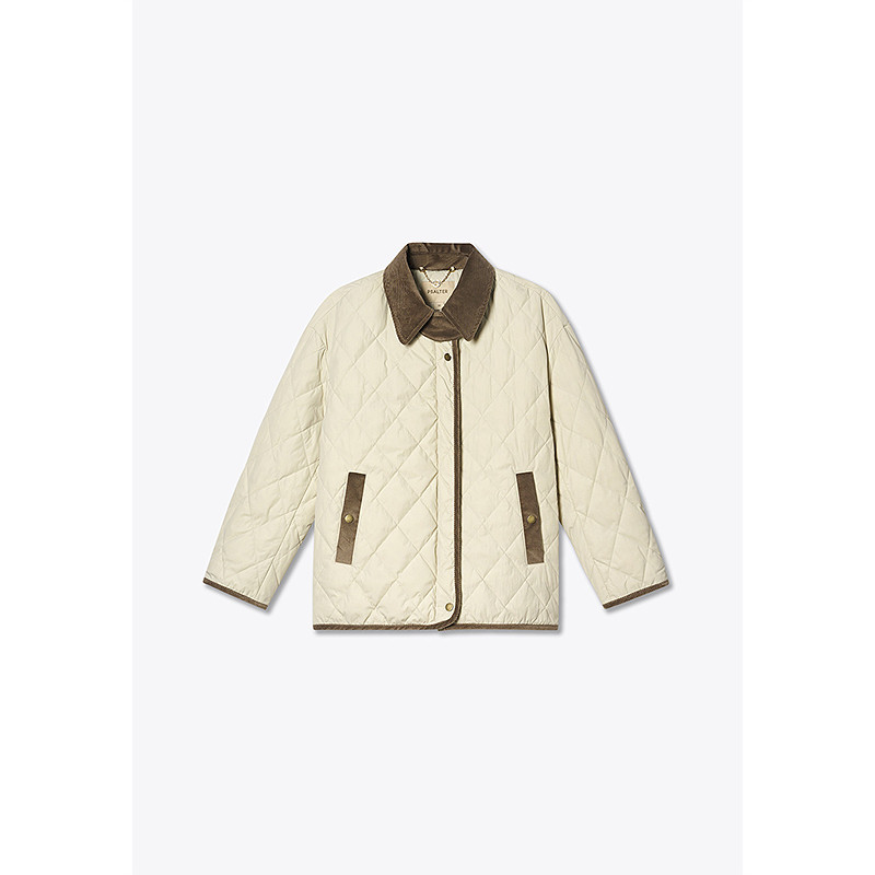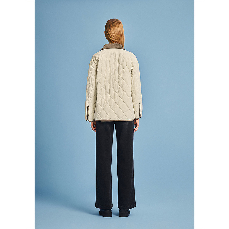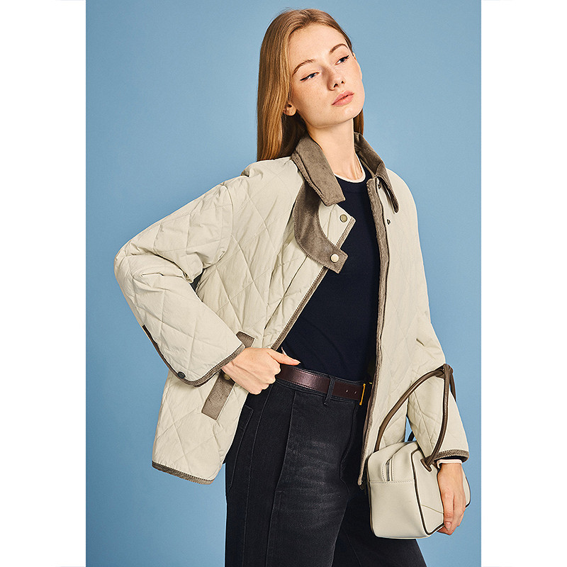 诗篇专选简约灯芯绒拼接撞色菱形绗线羽绒服女2026春季 新款