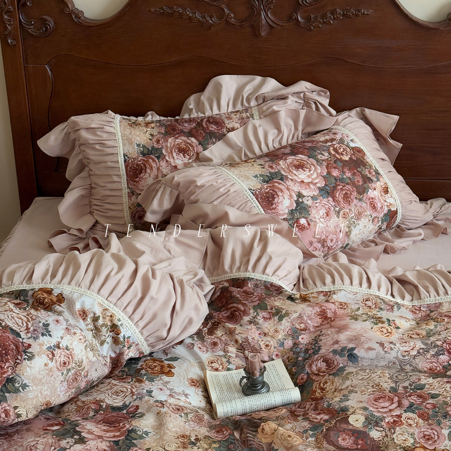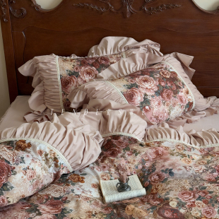 Tender 复古风少女全棉磨毛四件套纯棉床裙花卉印花床上用品 法式