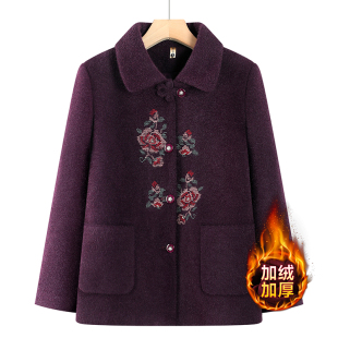 中老年女奶奶水貂绒外套特大码 胖妈妈老太太秋冬加绒加厚国风大衣