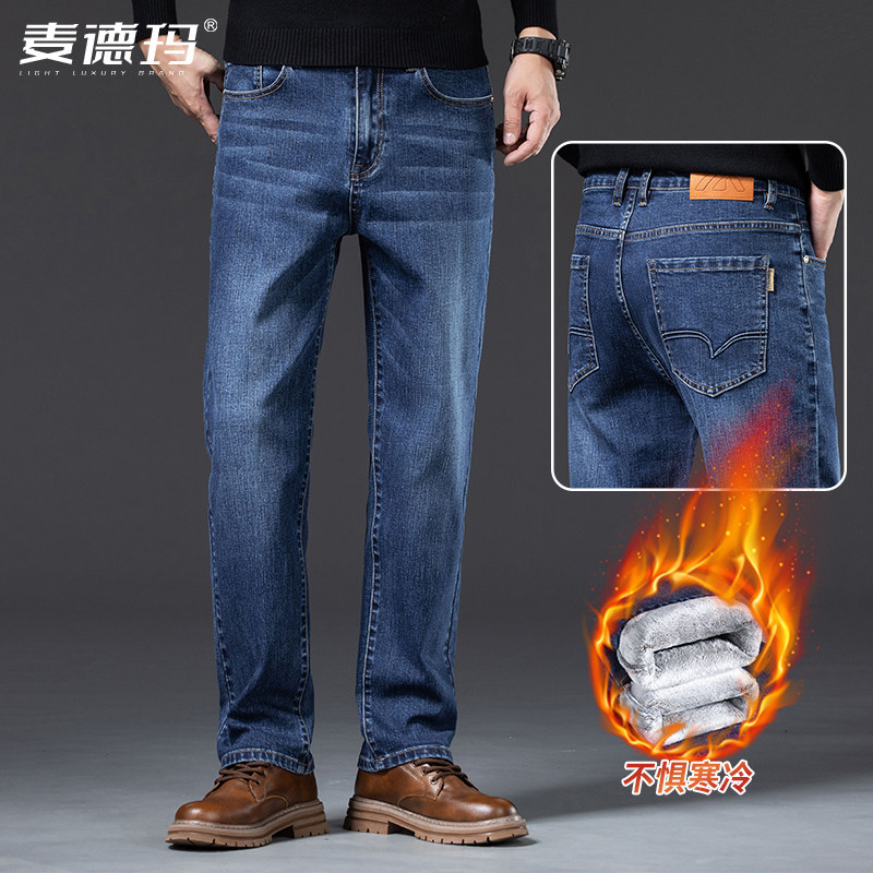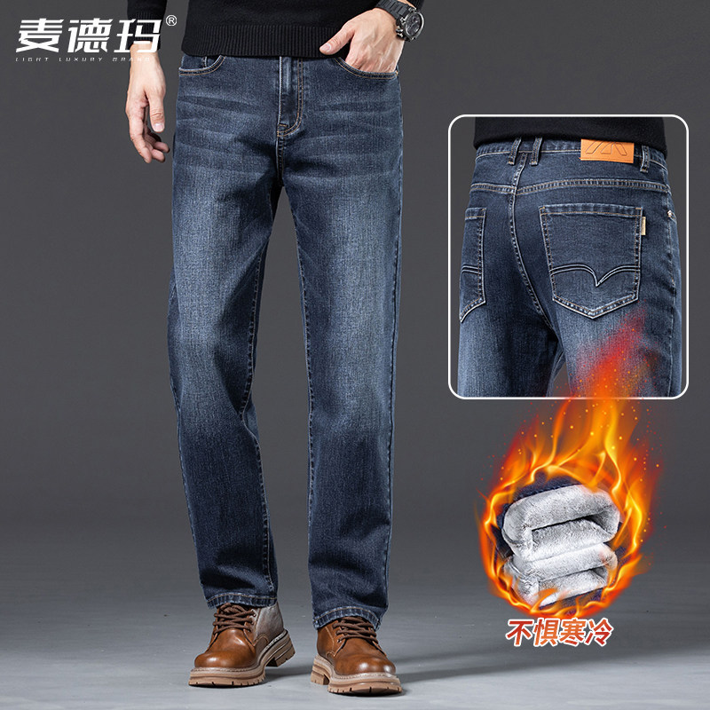 中年爸爸商务长裤 宽松直筒裤 男秋冬新款 KZH真维斯高端加绒牛仔裤