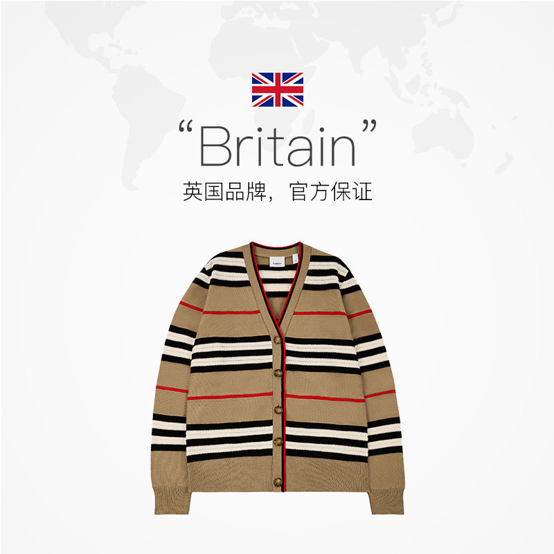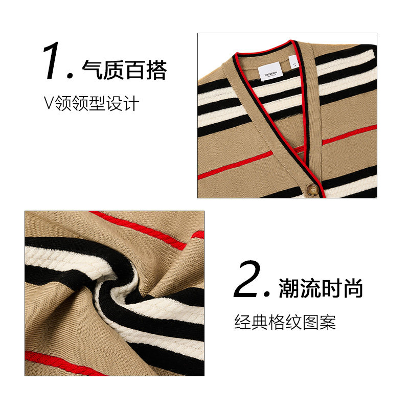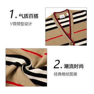 女款 博柏利巴宝莉针织开衫 BURBERRY 条纹单排扣毛衣上衣 自营
