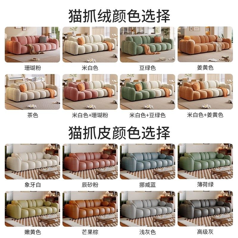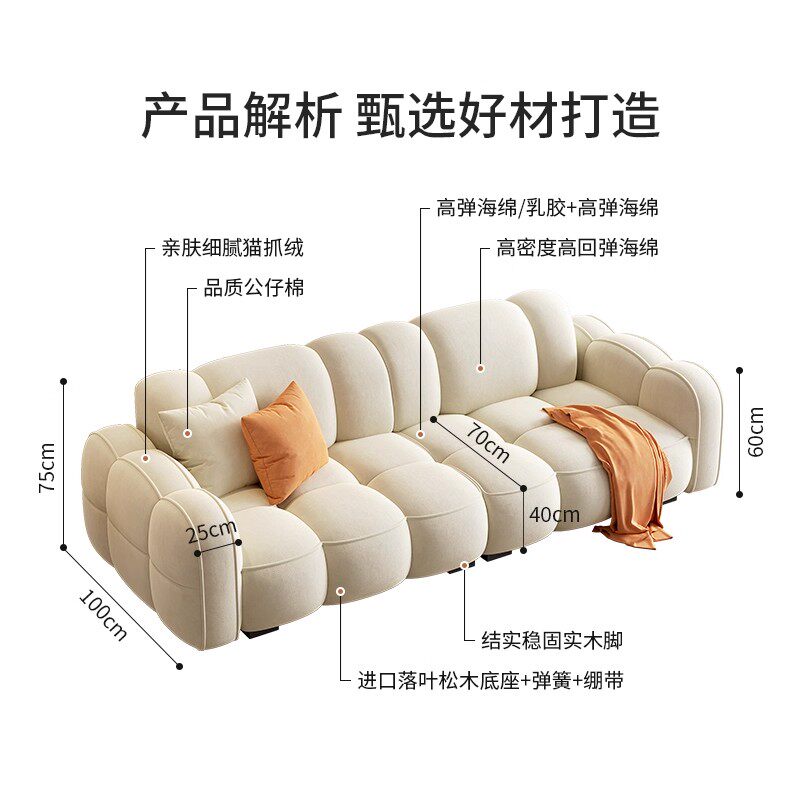 法莎蒂布艺沙发客厅现代简约直排三人位复古奶油云朵沙发雪尼尔
