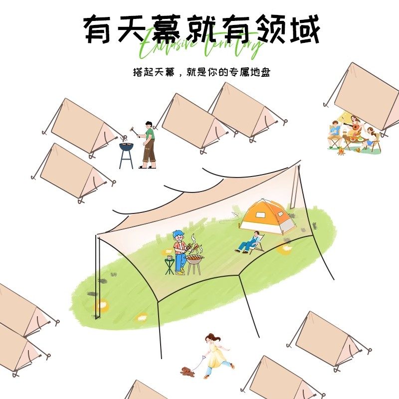 加厚黑胶天幕户外露营野餐庭院沙滩防雨防晒遮阳棚牛津布帐篷便携