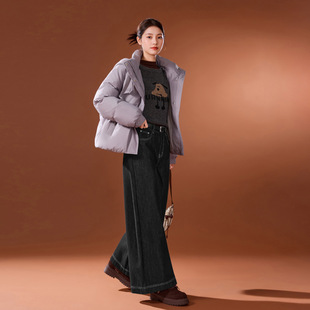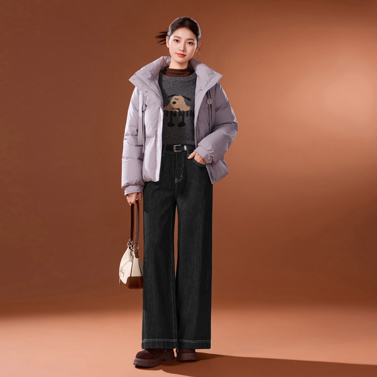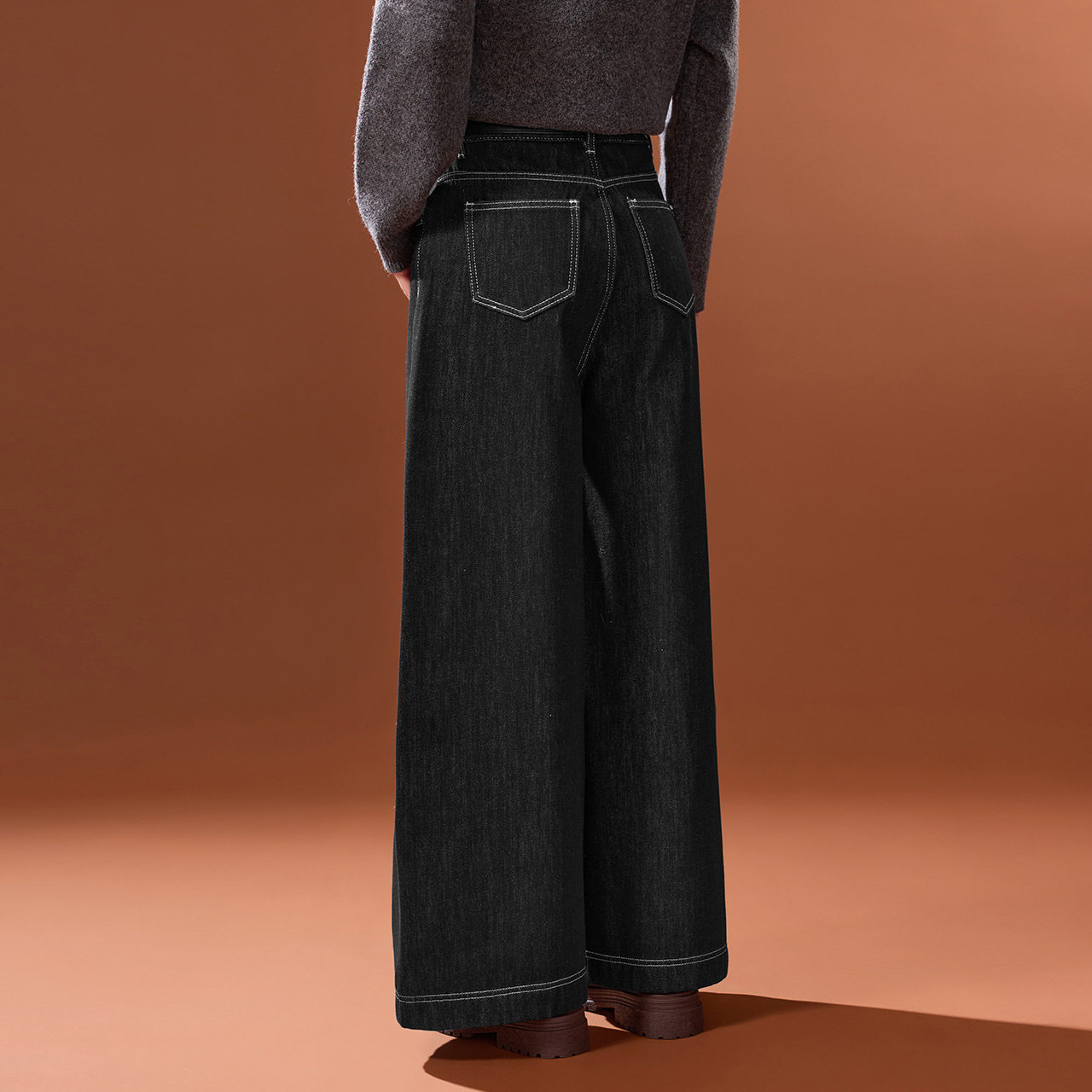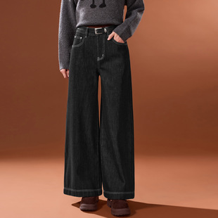 新款 子2025冬季 韩版 时尚 IEF 通勤显瘦加绒保暖牛仔阔腿裤 爱依服裤