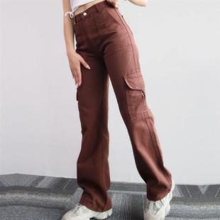 运补6 女高腰显瘦长裤 青蓝阔腿牛仔裤 子7448 秋冬新款