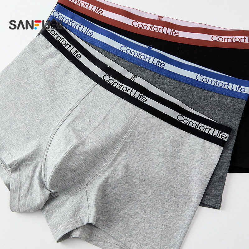 四角裤 三福 英文腰头平角裤 个性 男514152 男棉感花纱运动风内裤