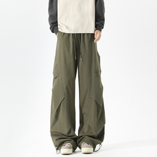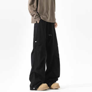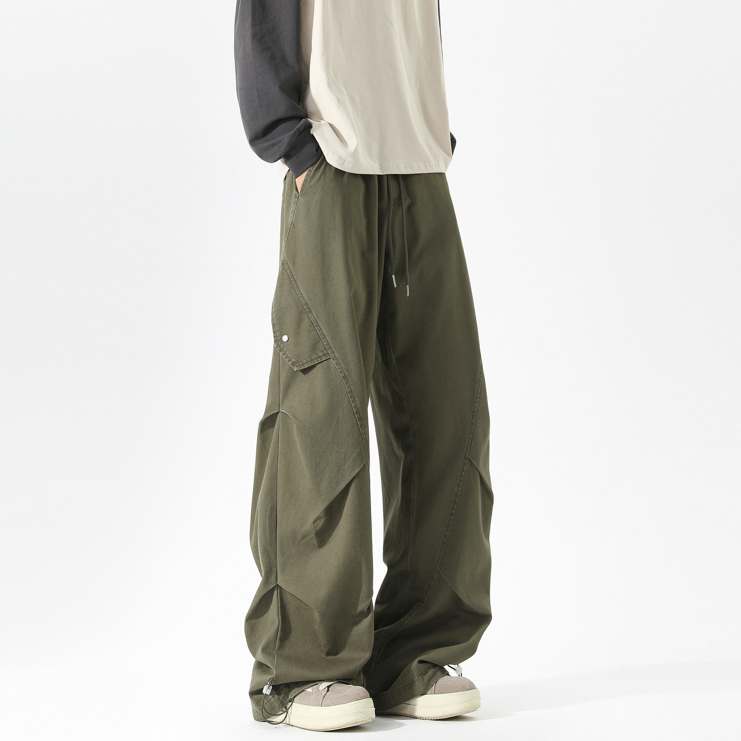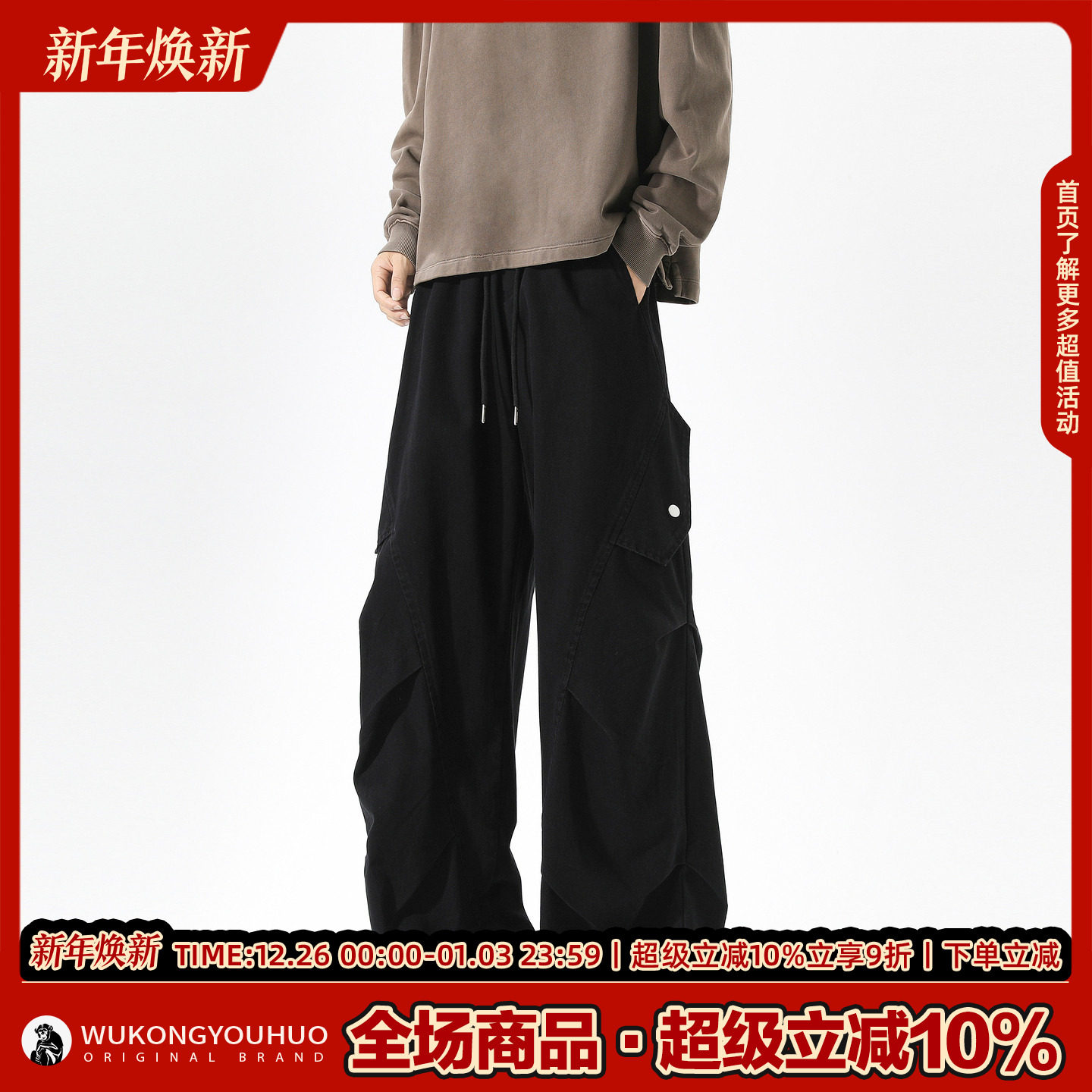 男宽松潮流百搭阔腿休闲长裤 裤 复古褶皱直筒工装 悟空有货潮牌美式