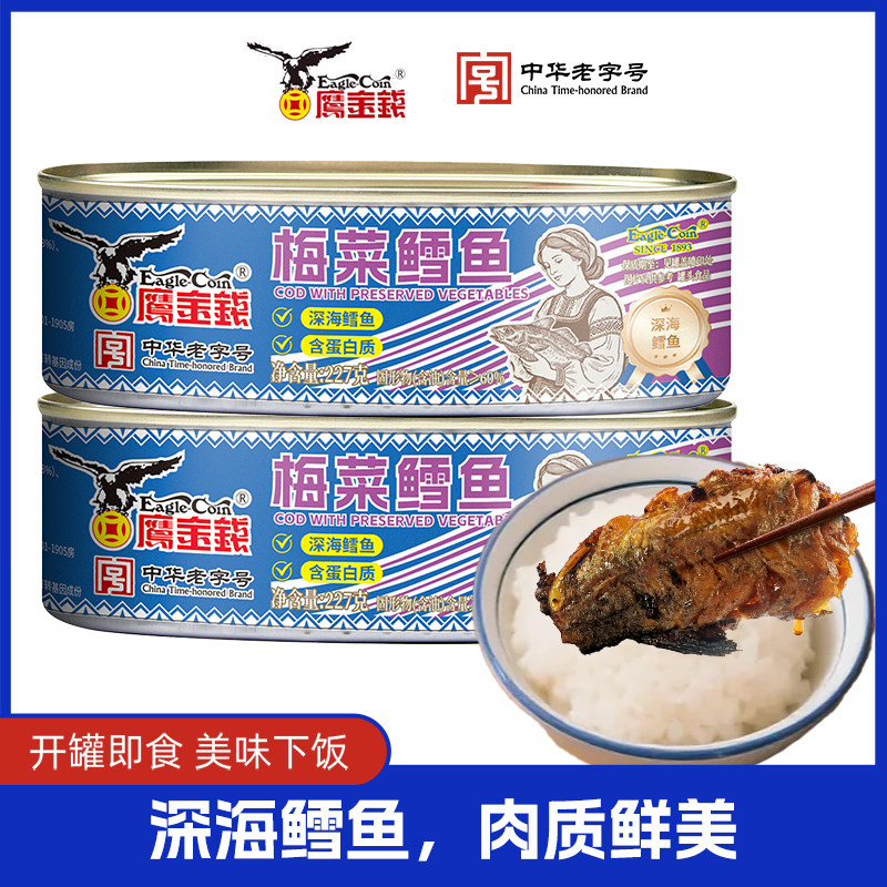 鹰金钱豆豉鳕鱼罐头梅菜阿拉斯加进口深海鱼类罐头即食中华老字号
