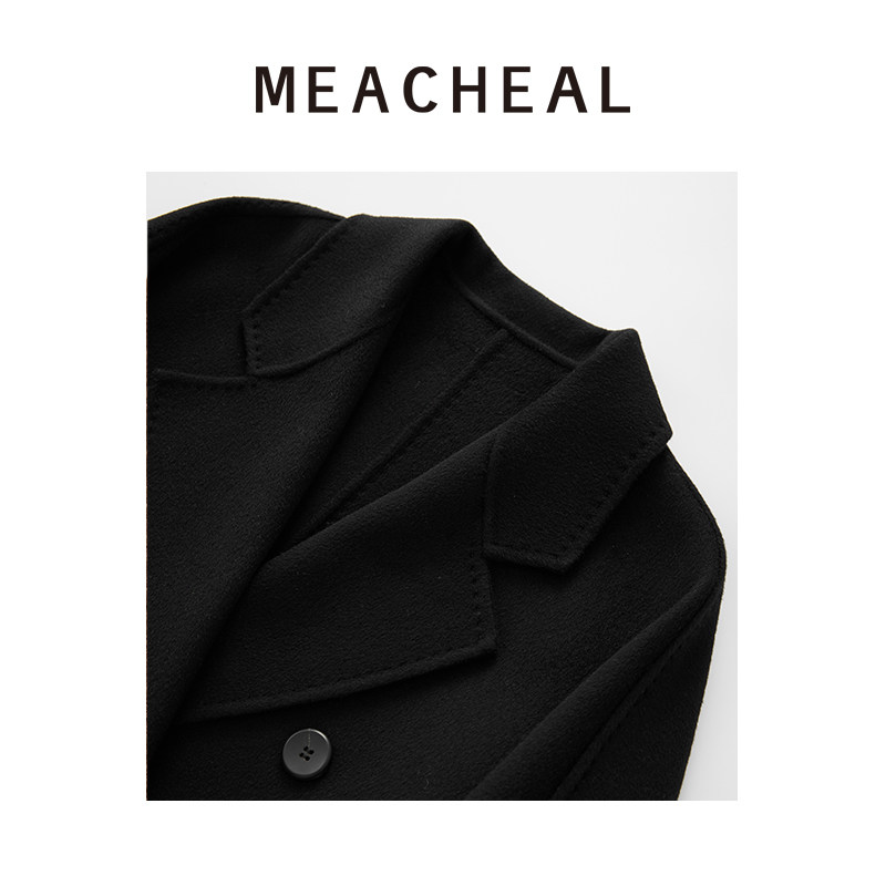 西装 过膝双面羊绒外套 领毛呢子风衣 中长款 纯羊毛双面呢大衣男士