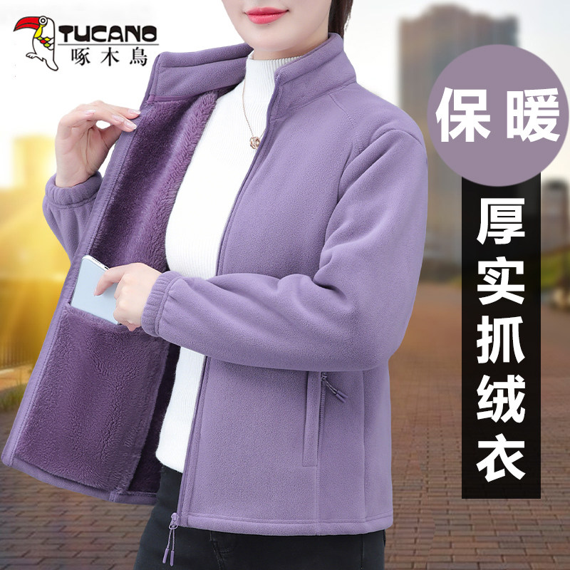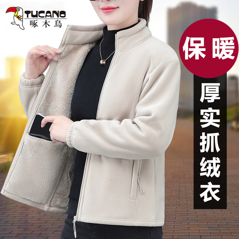 啄木鸟奥粒绒立领抓绒衣女士秋冬季 双面绒加厚摇粒绒外套 2025新款