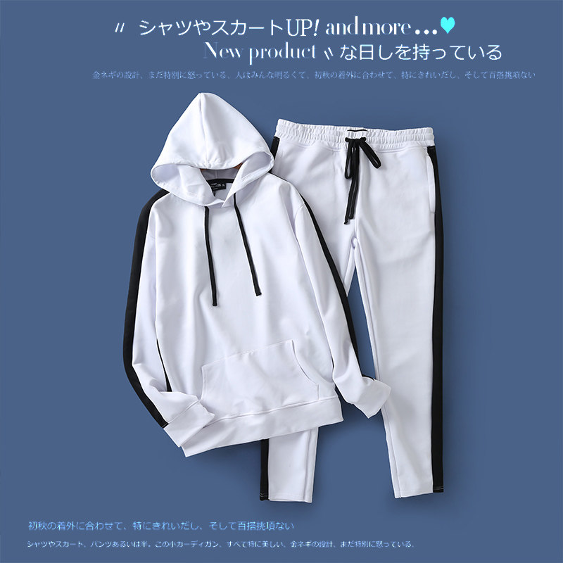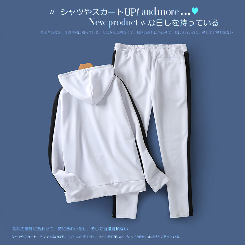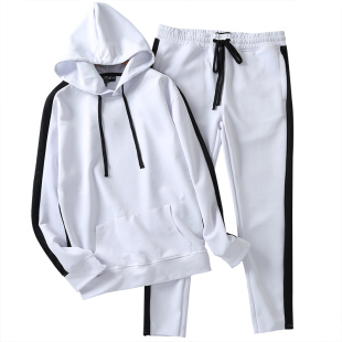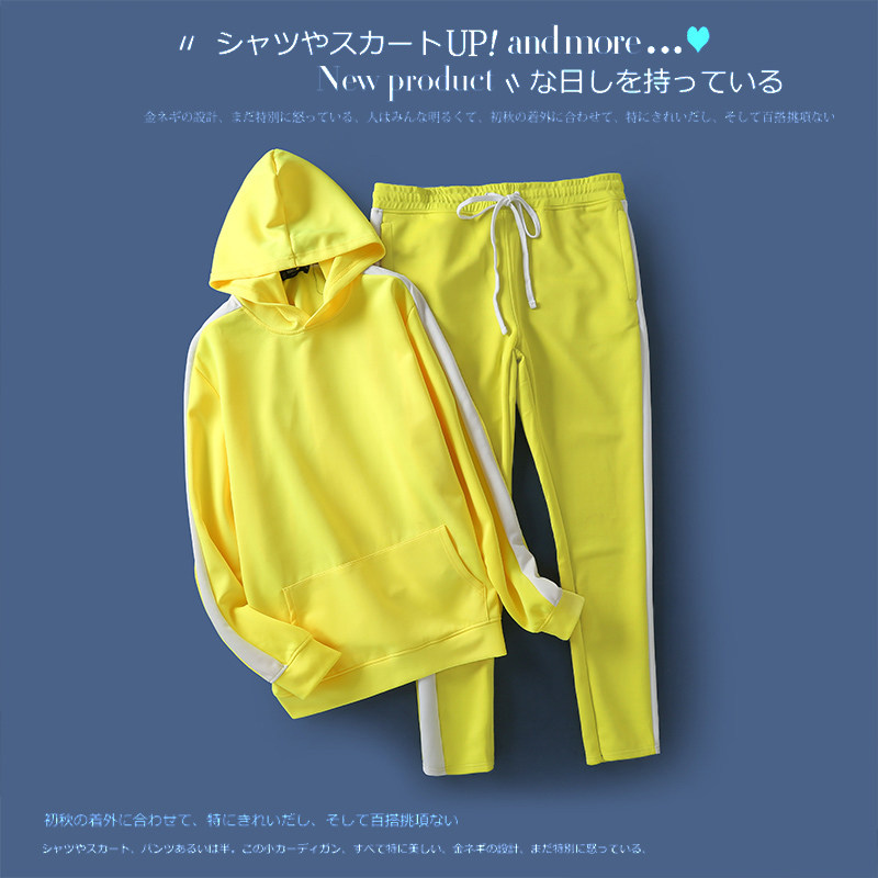 拼色连帽套头上衣松紧腰宽松长裤 卫衣新款 情侣款 外贸欧美单时尚