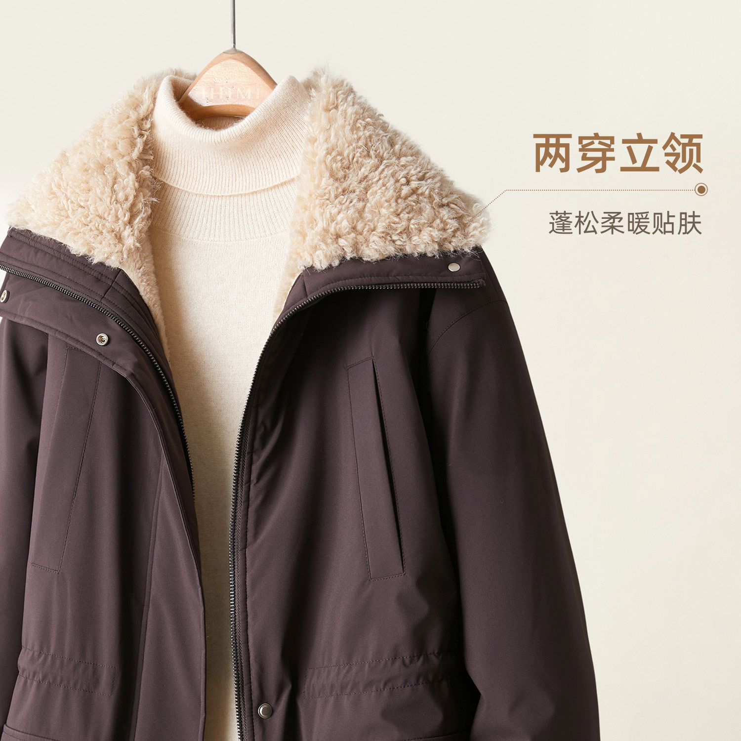 男女同款 羽绒服冬季 保暖加厚防风连帽面包服羽绒外套 短款 骆驼女装