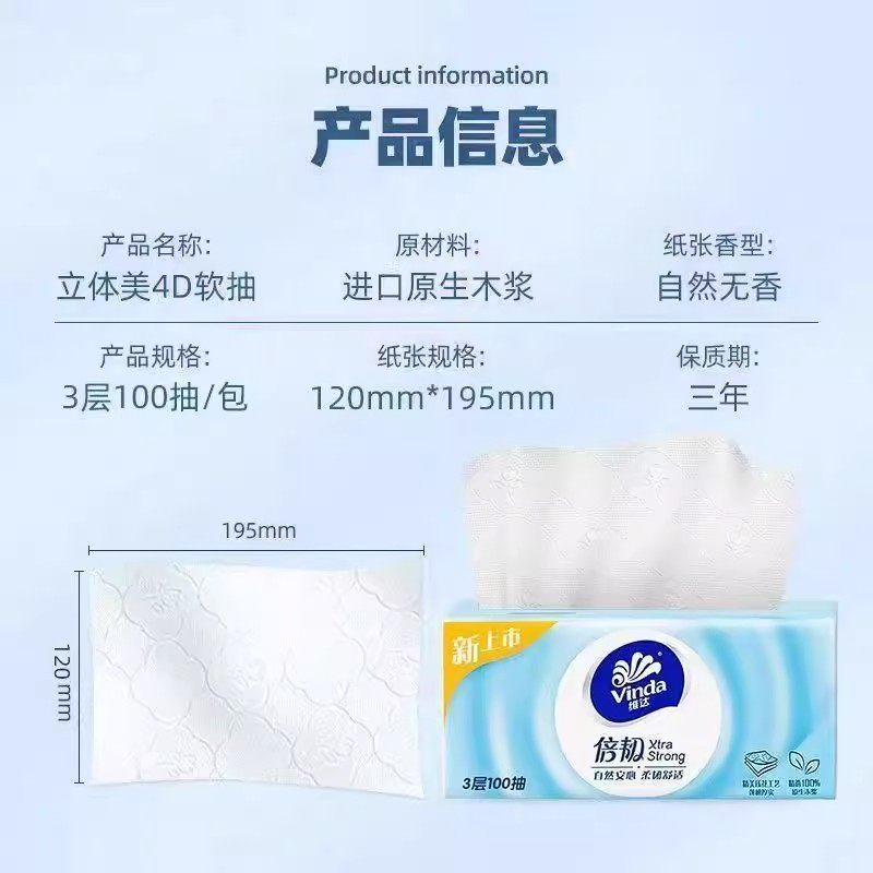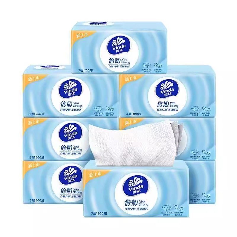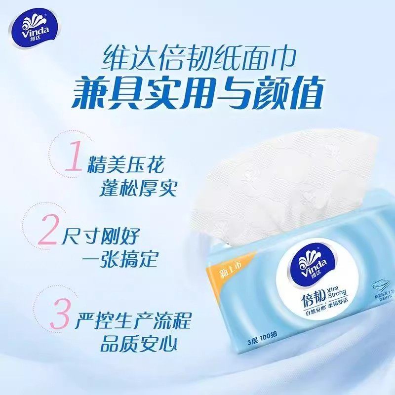 2大包维达倍韧纸巾抽纸宝宝婴儿餐巾纸卫生纸擦手纸 100抽2包