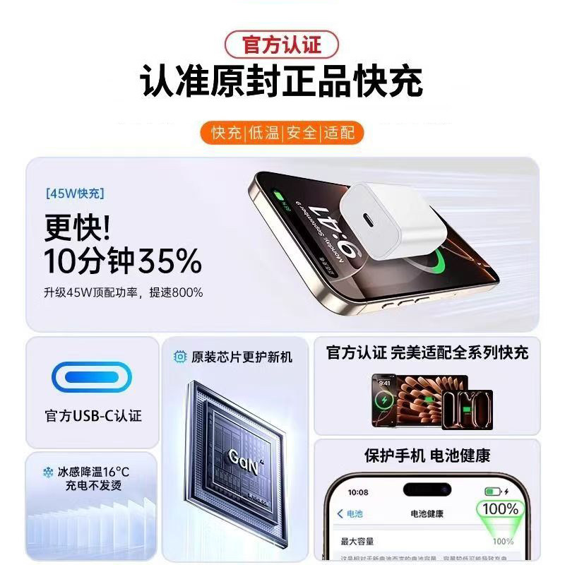 原装 正品 数据线 11插头iPad一套装 45W快充适用苹果充电器头iPhone17 12ProMax手机PD16 国家3C认证