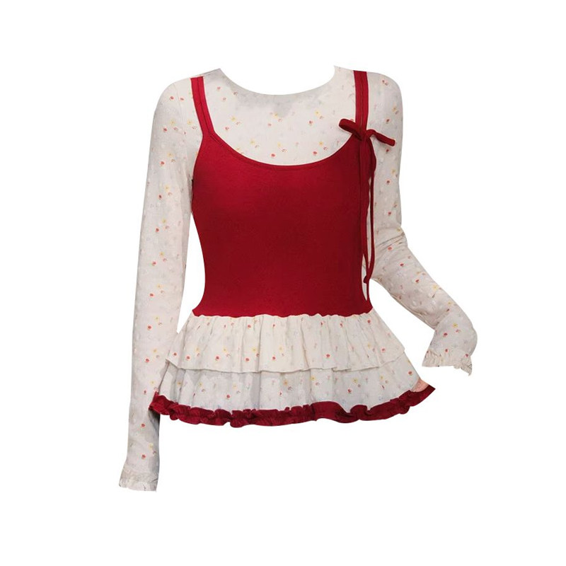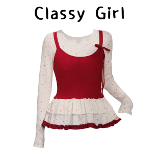 甜美假两件修身 Classy 春季 软甜草莓 上衣双层荷叶边T恤 girl