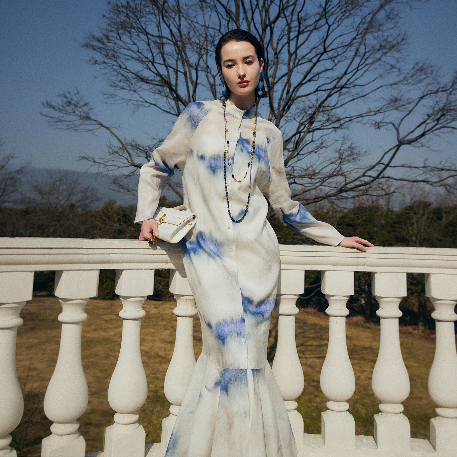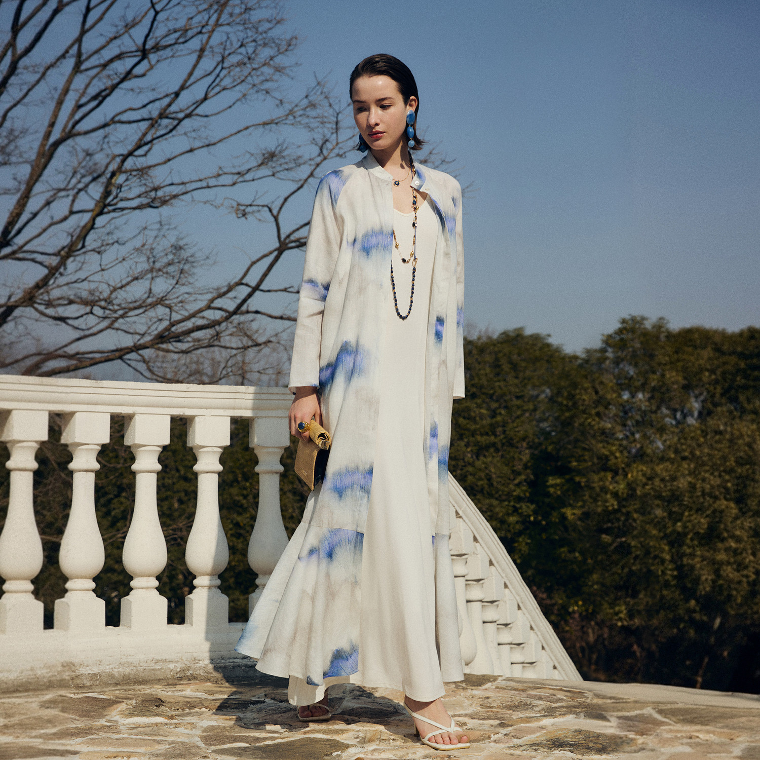 慵懒度假风鱼尾长裙子 连衣裙2026夏新款 TU云隙漫海 亚麻印染衬衫