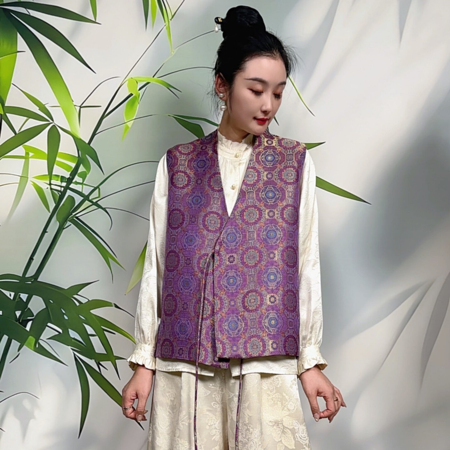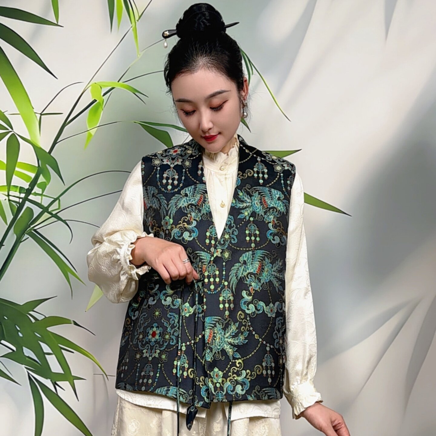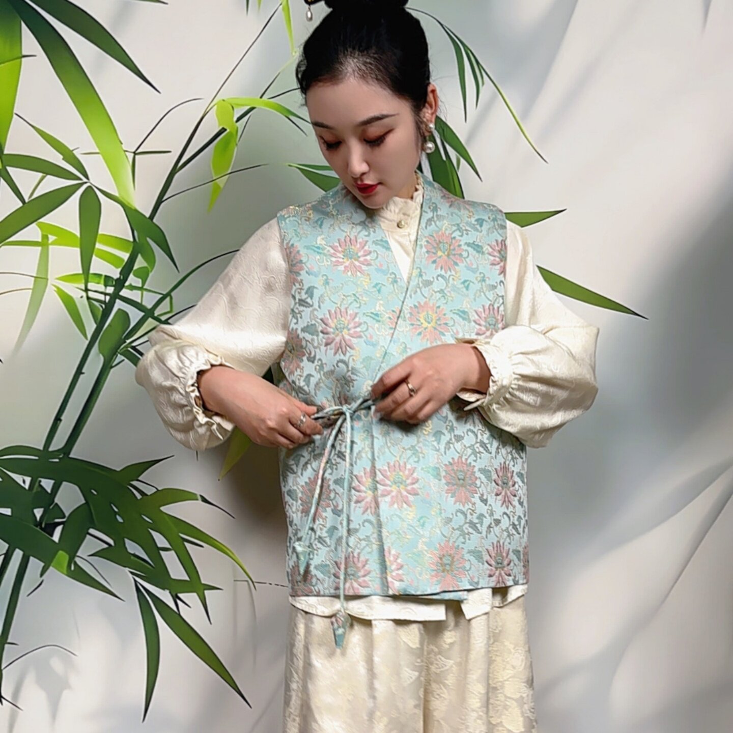 上衣 100桑蚕丝宋锦V领绑带道袍马甲高端女款 新中式 国风2026新款