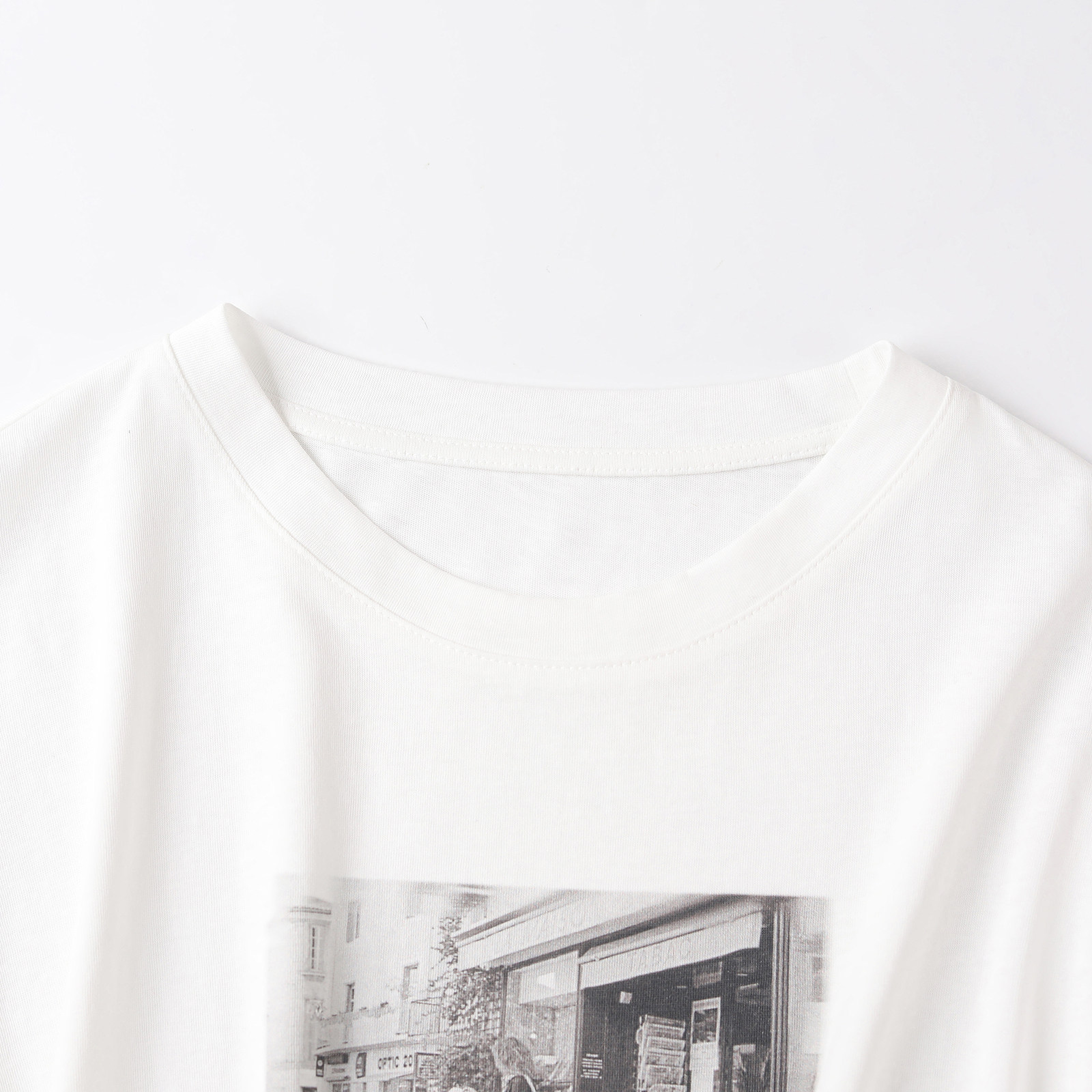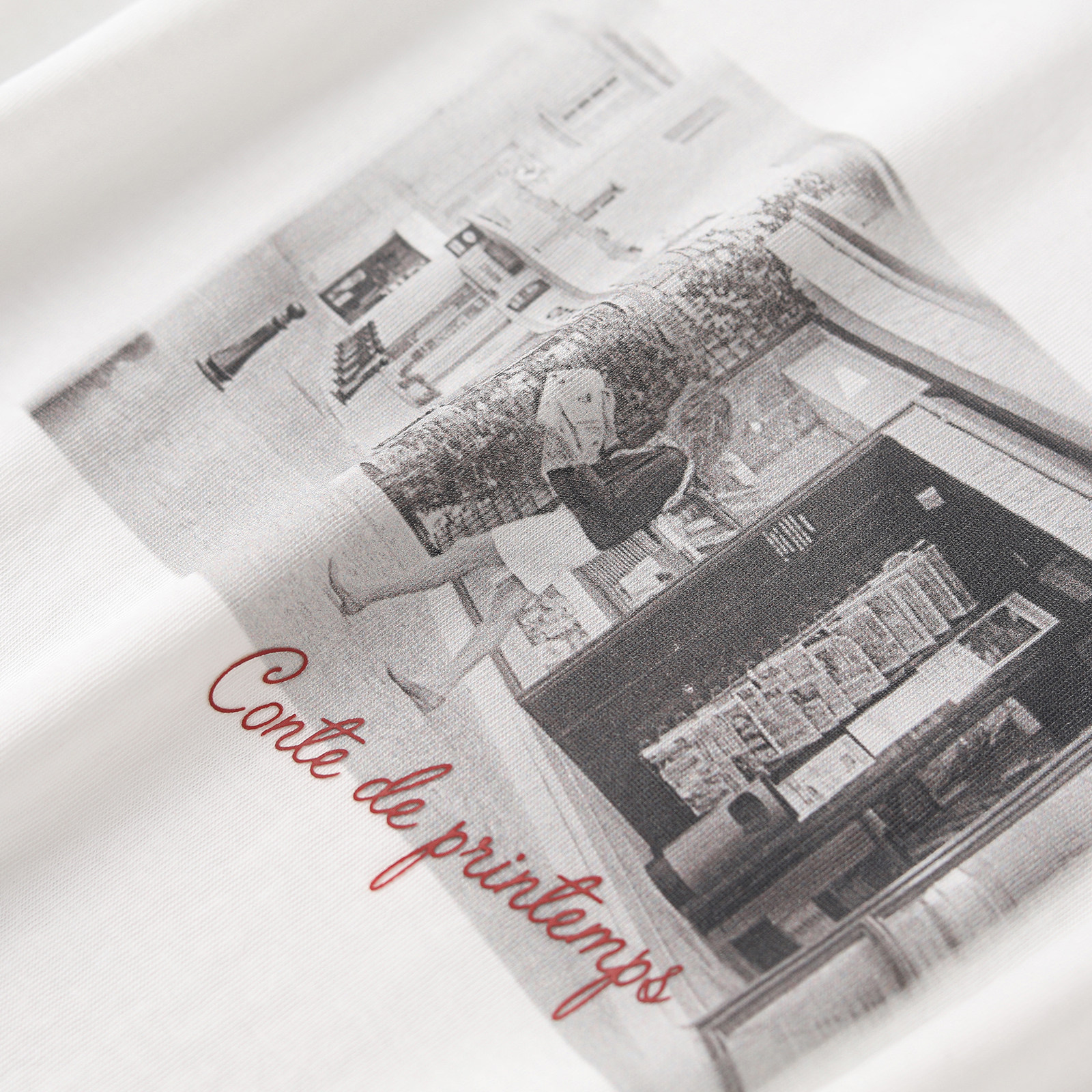 try法式 新款 春日故事 T恤春季 宽松上衣女 做旧印花打底长袖 wana