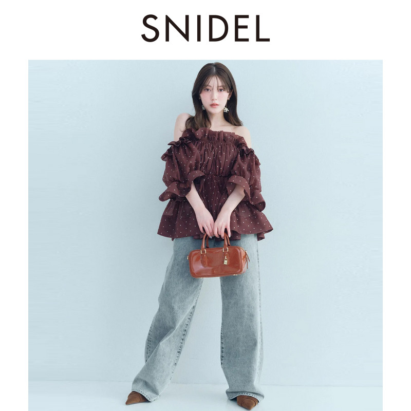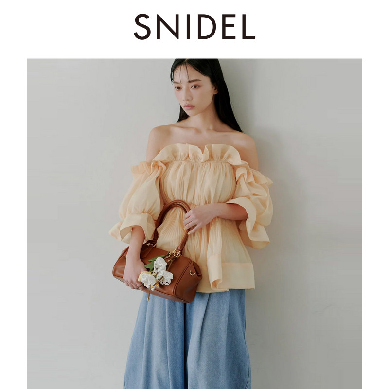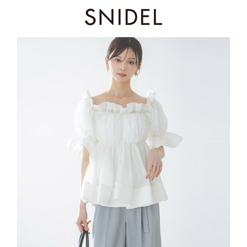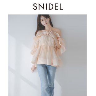 上衣SWFB261250 衬衫 SNIDEL2026春夏新品 甜美荷叶边一字露肩泡泡袖
