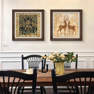 高级感壁画福禄 复古风饭厅背景墙挂画油画肌法式 餐厅装 饰画欧美式