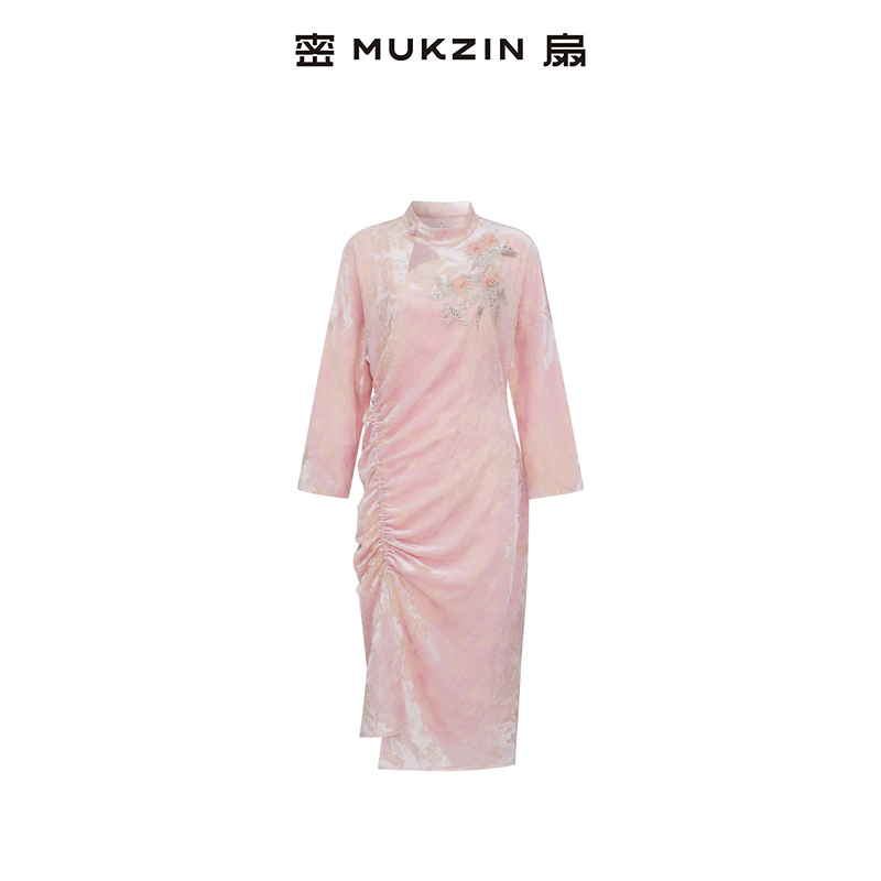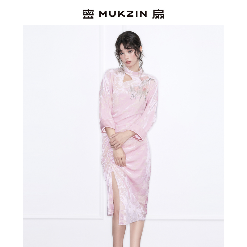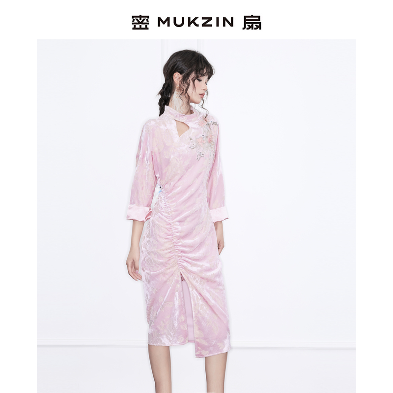 尤克菲儿 复古旗袍 轻奢高定网纱植绒烫金印花气质优雅新中式