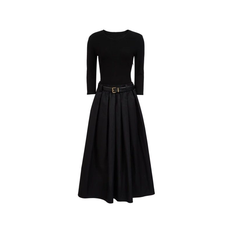 同款 新圆领腰带针织拼接A字长裙32537C005 定制连衣裙2025秋季