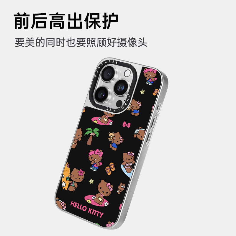 夏日联名黑皮Kitty适用iPhone16promax手机壳苹果15潮牌14 创意KT猫可爱防摔保护套 13新款