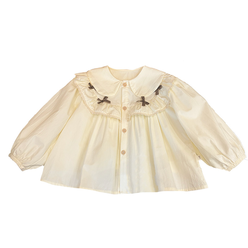 上衣 蝴蝶结花边衬衣女宝宝新潮洋气百搭外套时尚 女童春秋新款 衬衫