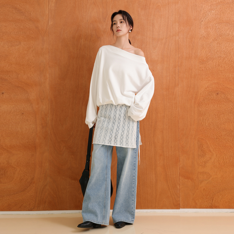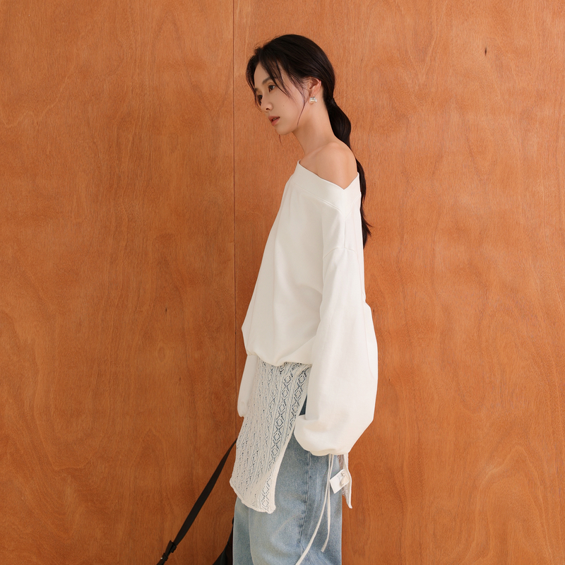 斜肩小众宽松长袖 美式 针织卫衣AX53WY188 25秋新款 AIRIQI商场同款