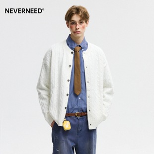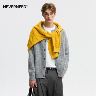 NEVERNEED麻花纯色毛衣开衫 潮牌肌理感情侣针织外套 男女秋冬美式