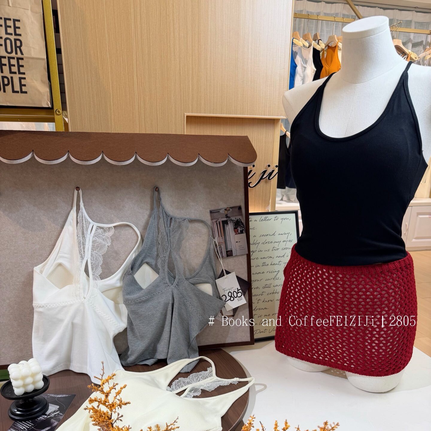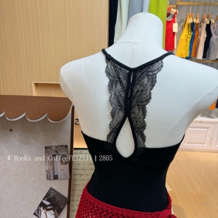 妃子纪2805辣妹风后背蕾丝吊带背心女带胸垫美背性感修身 打底上衣