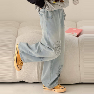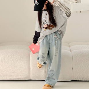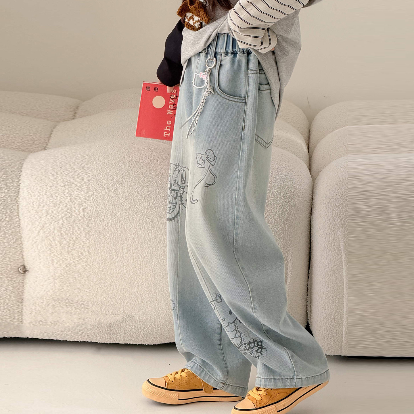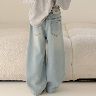 中大童韩版 2026新款 宽松阔腿直筒裤 春秋款 女童春装 儿童长裤 牛仔裤