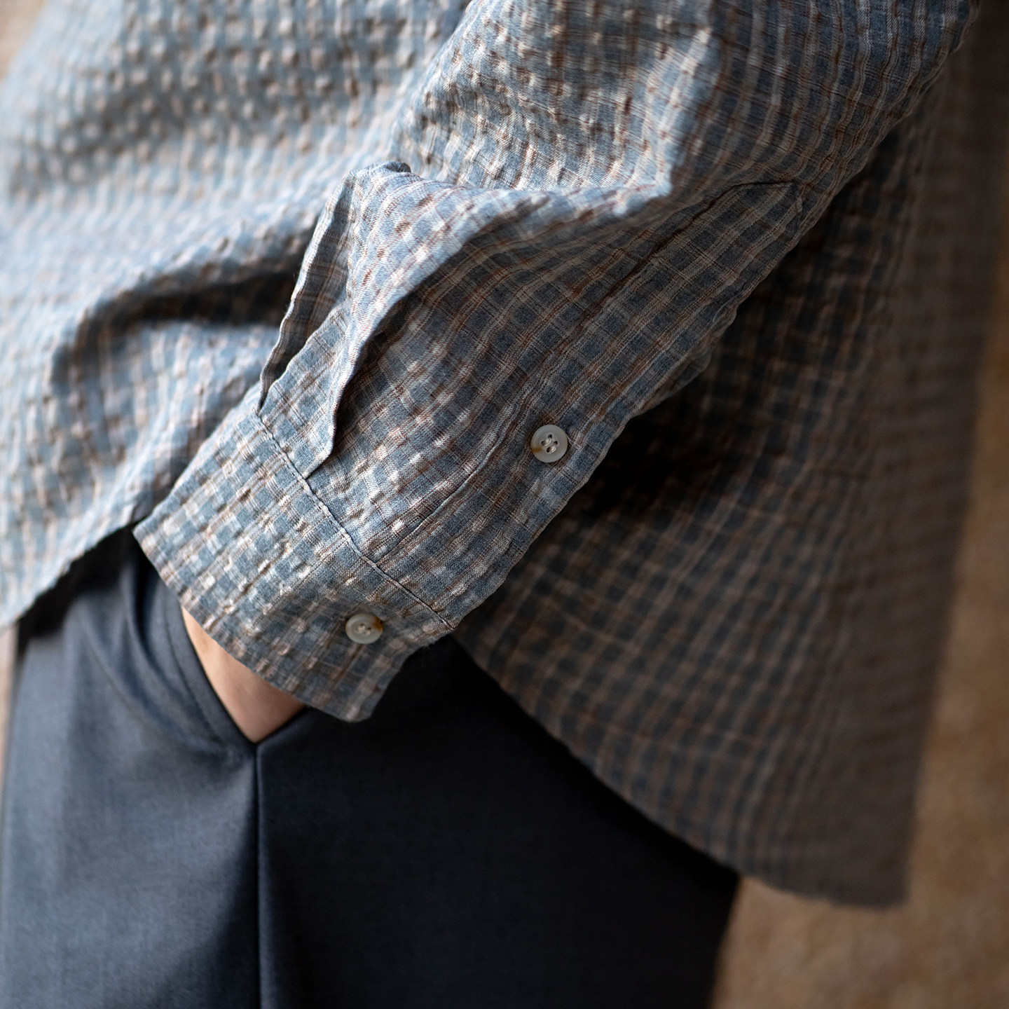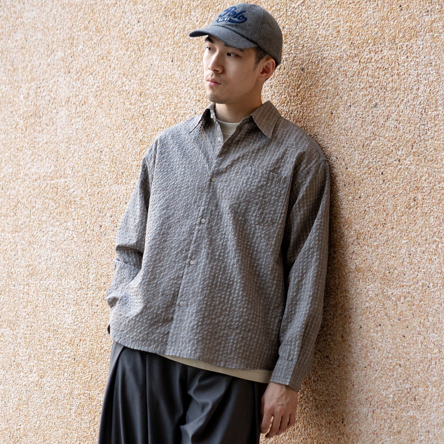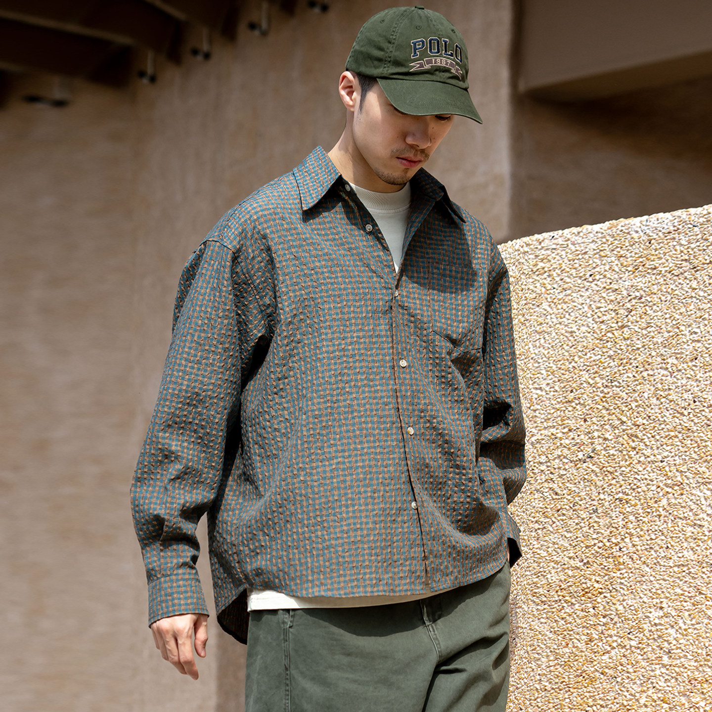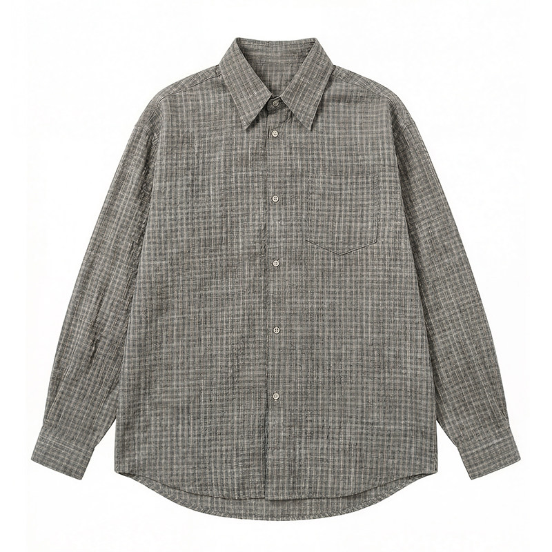 宽松休闲衬衣 春季 UrbanStandard日系复古泡泡纱格纹衬衫 男长袖