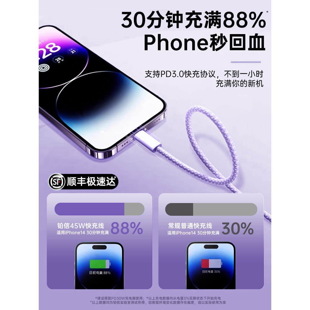 铂信适用苹果14充电线iphone13数据线17pro快充15手机16车载USB平板ipad正原usb编织2米 45w快充 顺丰