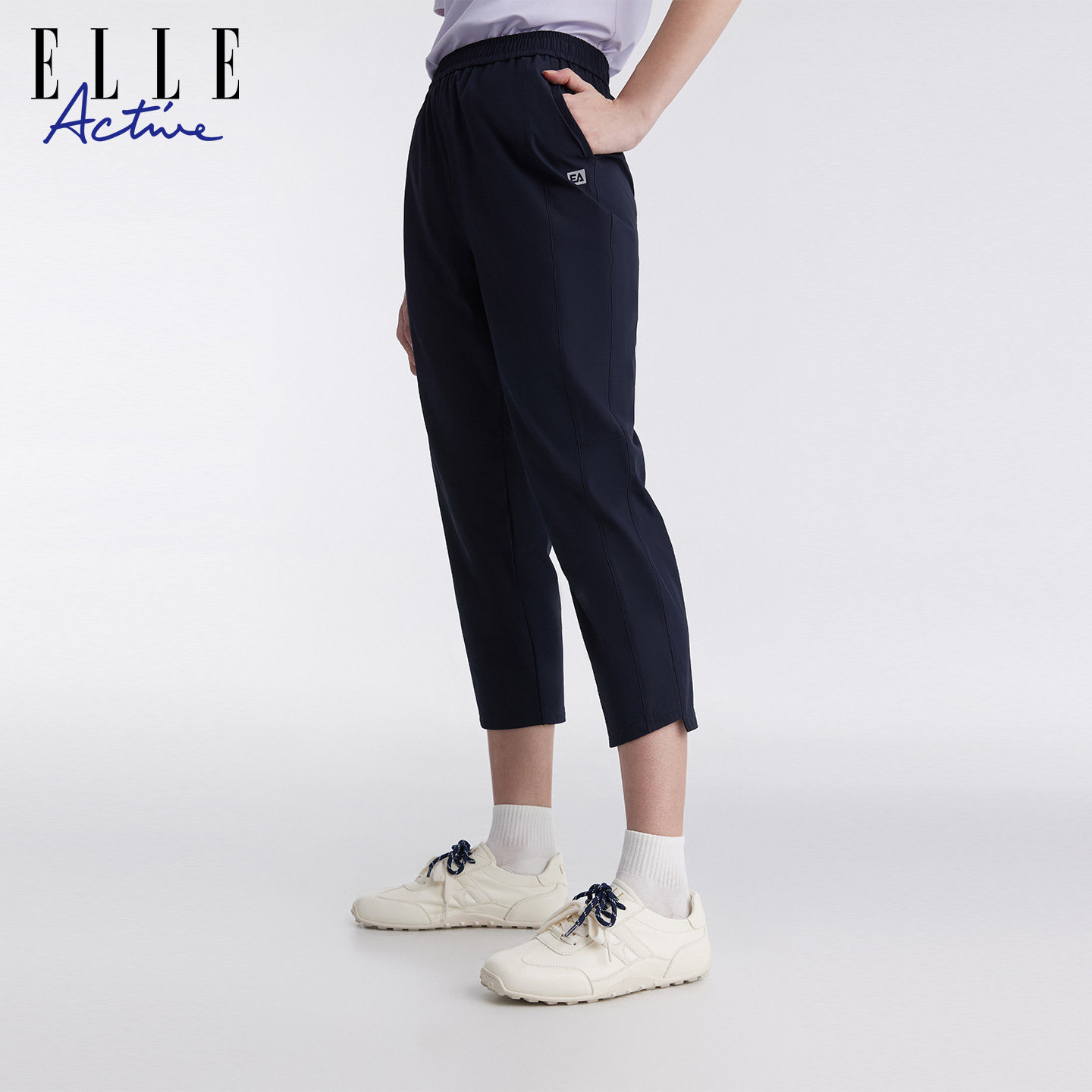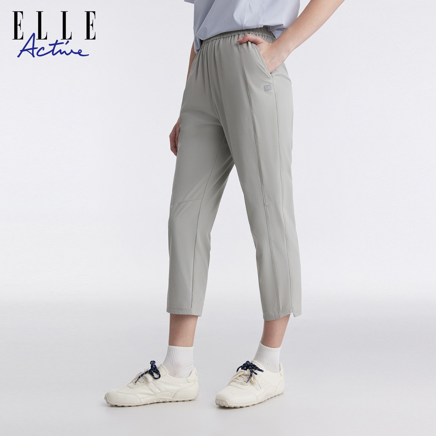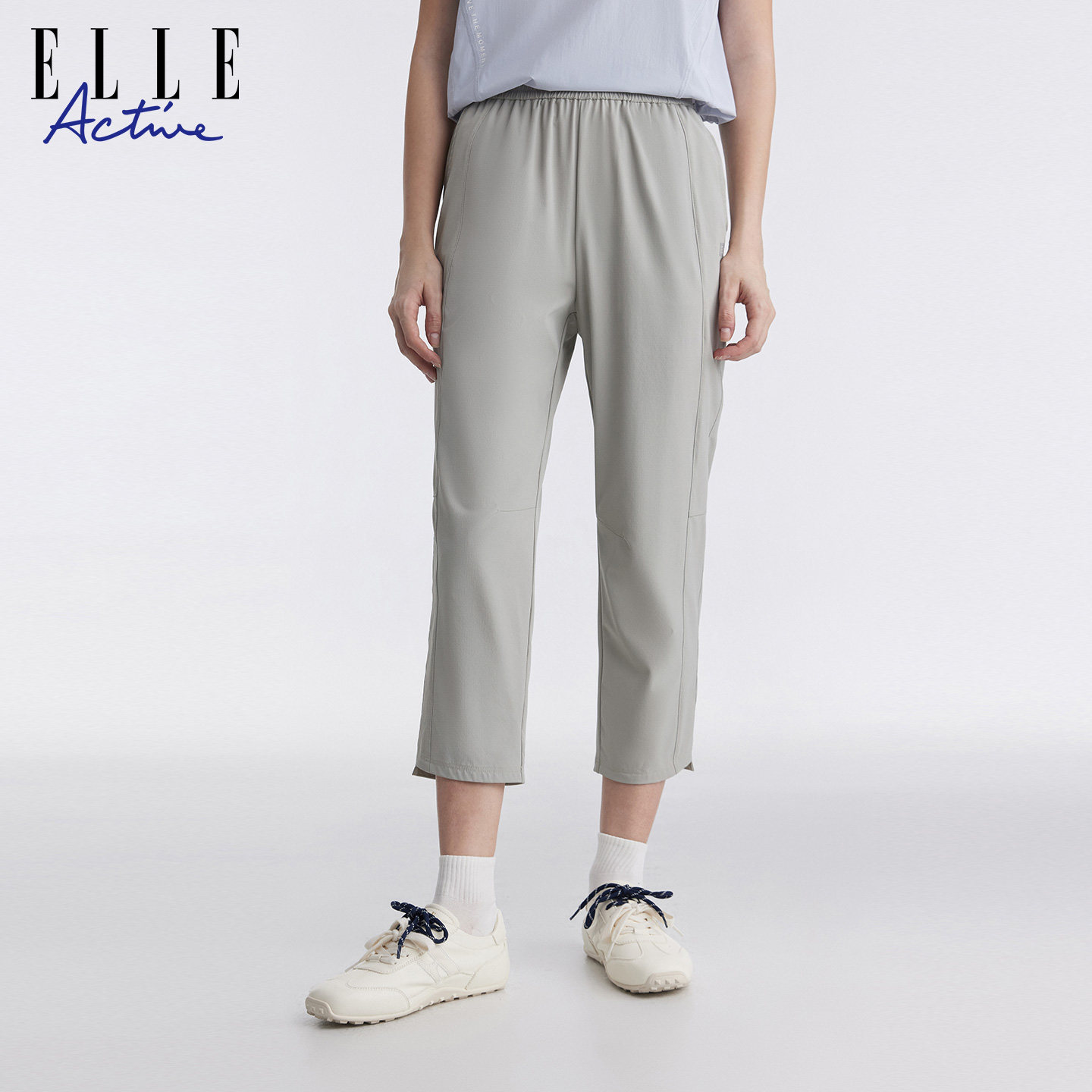 舒适 利落剪裁显瘦直筒裤 ELLE Active简约松驰户外运动休闲八分裤