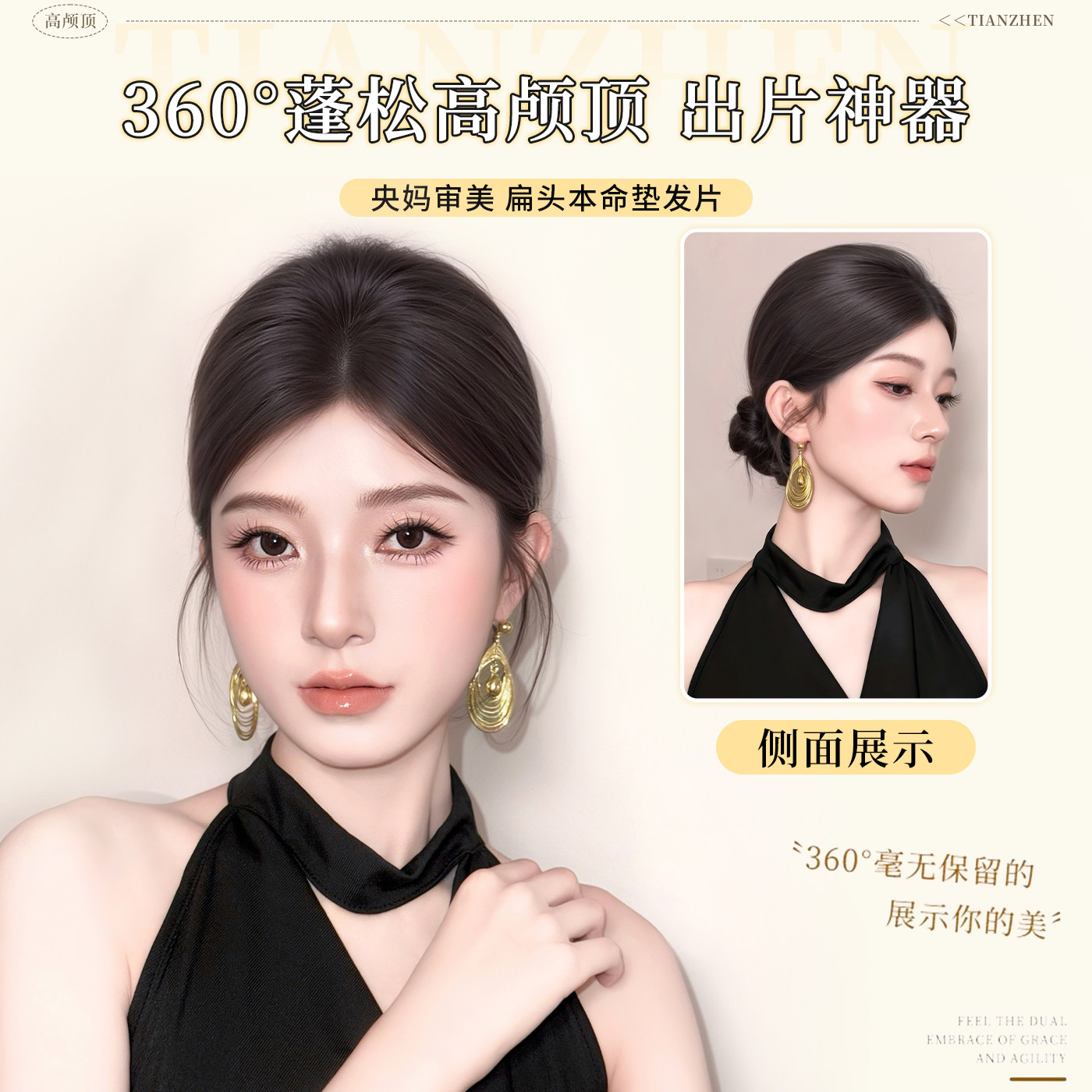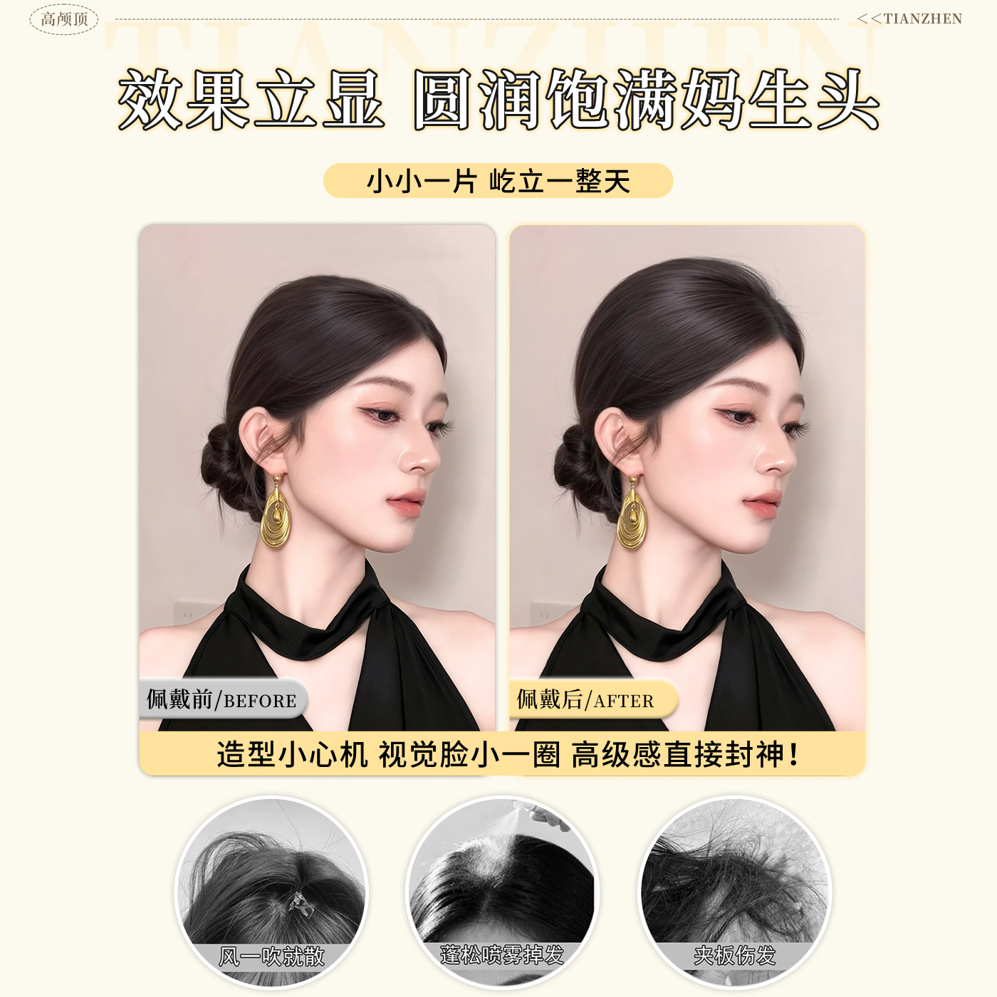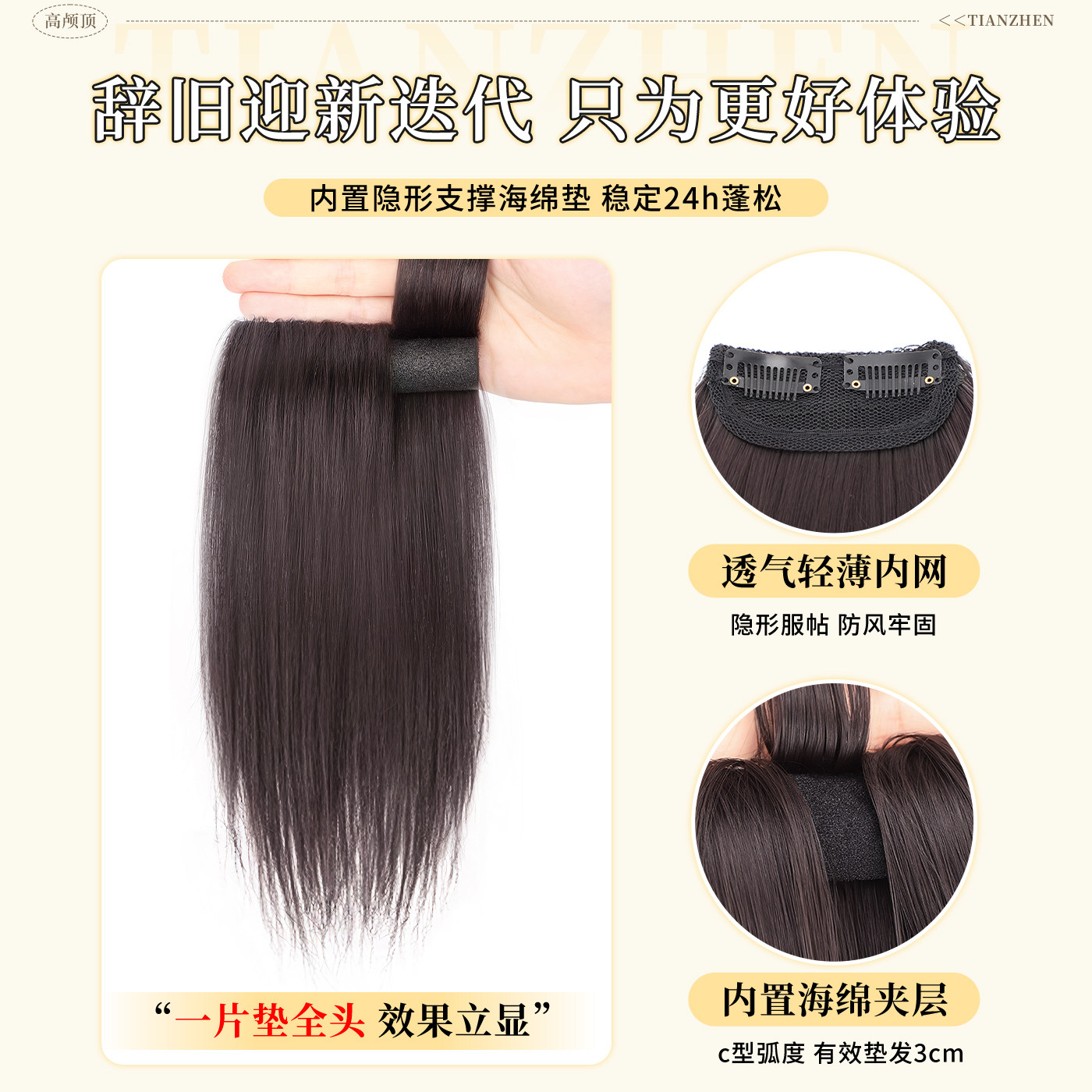 假发片女头顶增发量蓬松高颅顶神器垫发片无痕包边后脑勺扁头神器