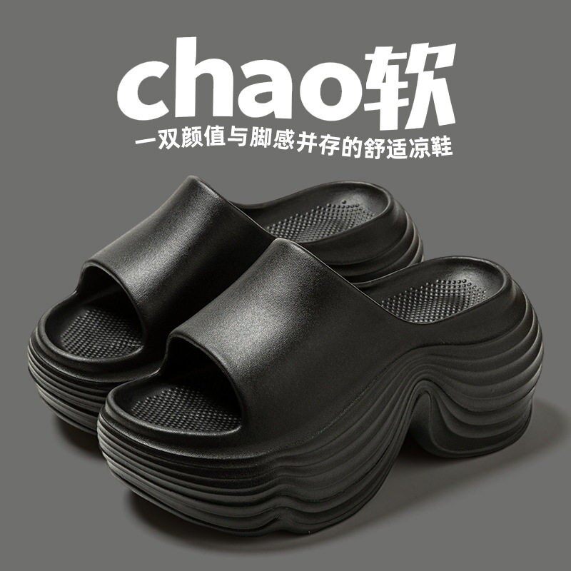 休闲踩屎感凉拖鞋 厚底增高拖鞋 旅行百搭简约时尚 外穿新款 女士夏季
