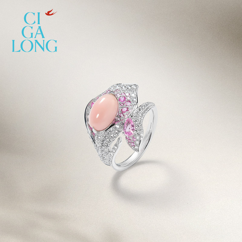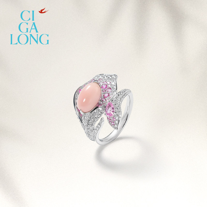 CIGALONG龙梓嘉池间莲海螺珠戒指PT950钻石粉蓝宝手饰新中式 珠宝