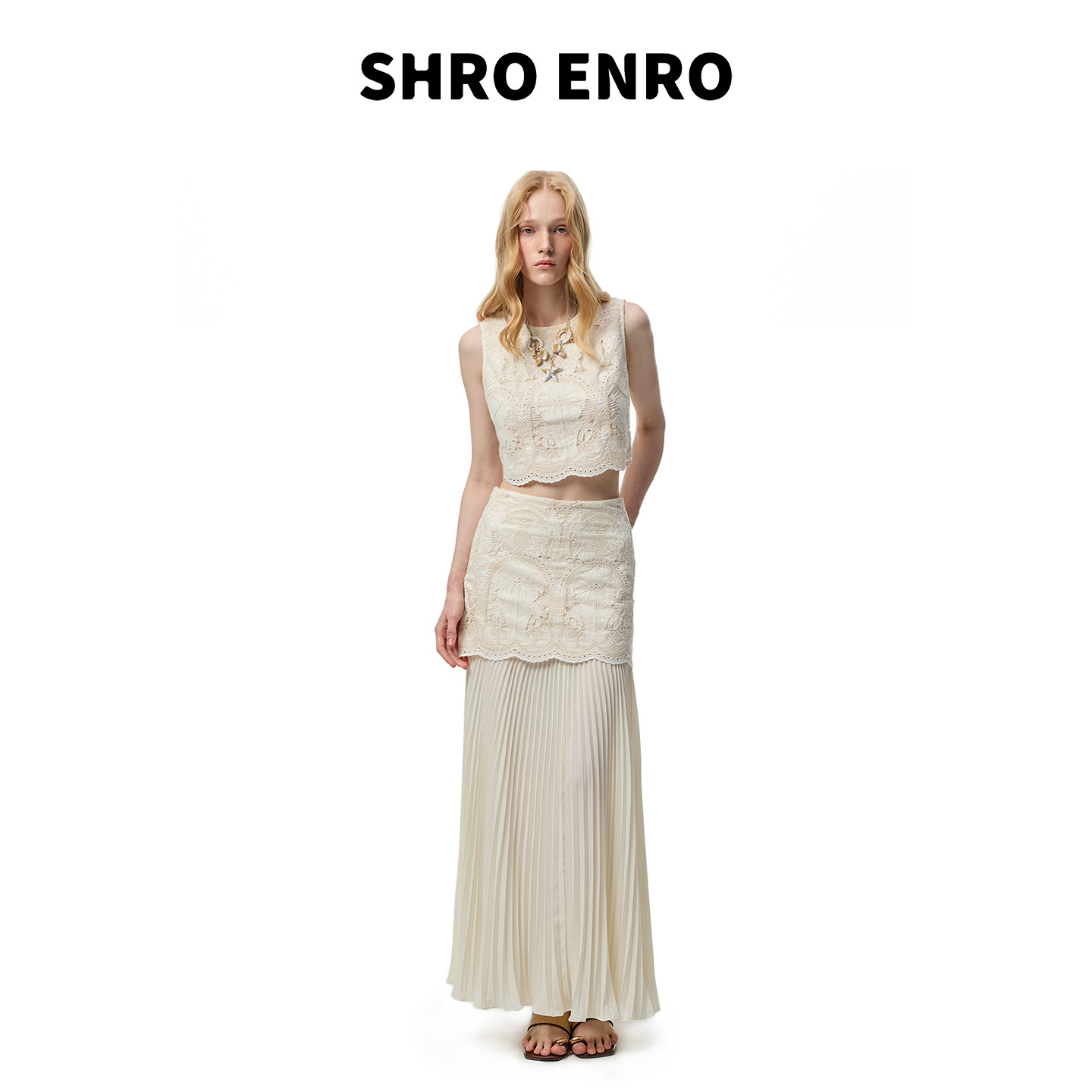 ENRO2026春季 背心无袖 新款 甜美风精致镂空蕾丝修身 上衣 法式 SHRO