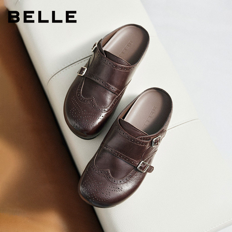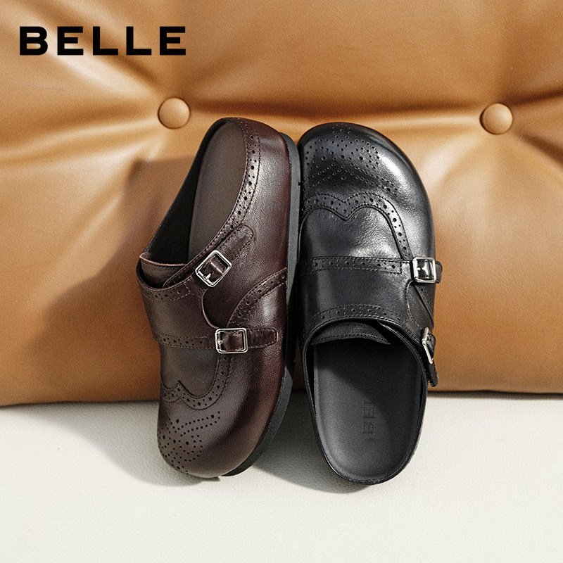 百丽羊皮布洛克勃肯鞋 女2026布洛克孟克软底可外穿包头半拖F6X1